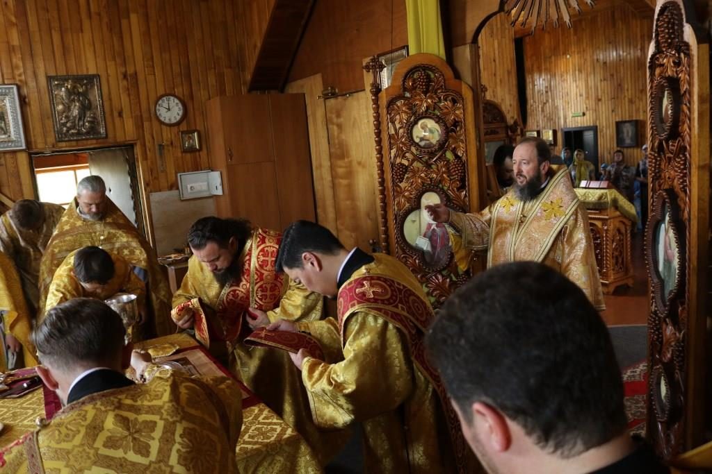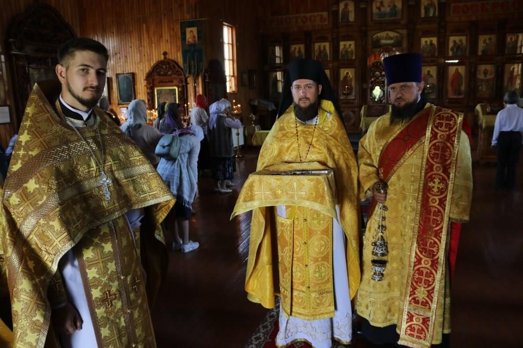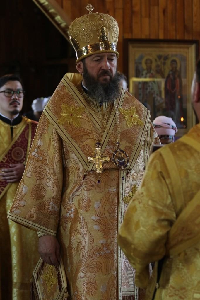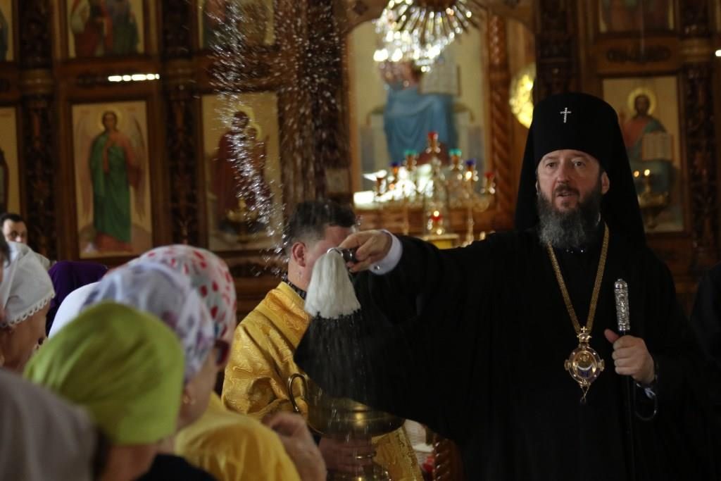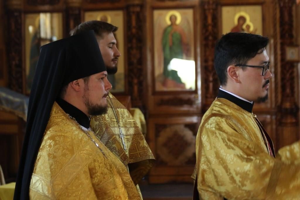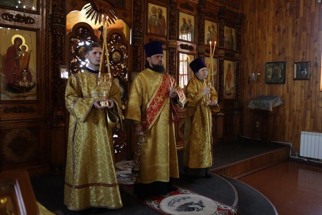 Владыке архиепископу сослужили; благочинный Усть-Каменогорского церковного округа, настоятель Покровского храма иерей Алексий Анищенко, клирики кафедрального Андреевского собора иеромонах Силуан (Магилев), иеромонах Мефодий (Шевчук), клирик Покровского храма иерей Иоанн Толмачев, секретарь епархии диакон Илия Кван, протодиакон Андрей Дудник, протодиакон Александр Якушев, диакон Кирилл Нарушин.