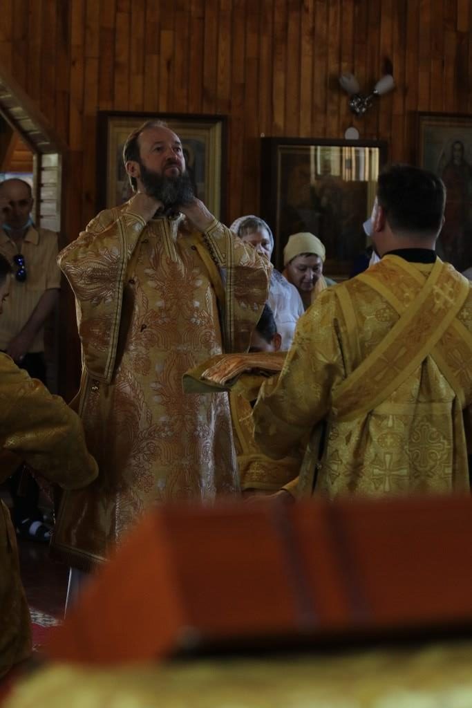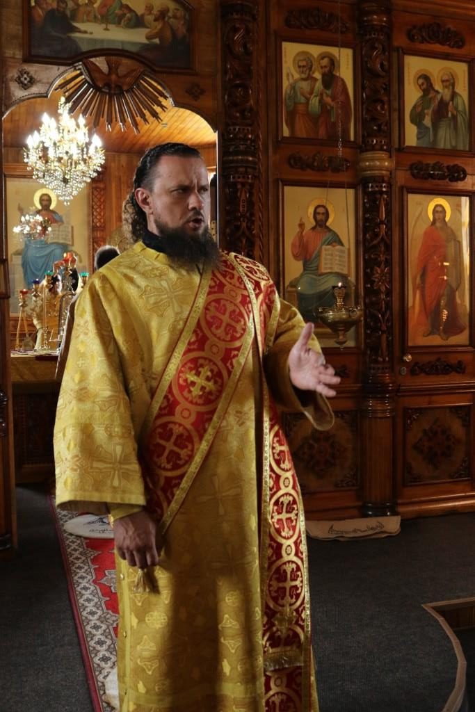 Перед причастием мирян проповедовал иеромонах Силуан (Магилев).