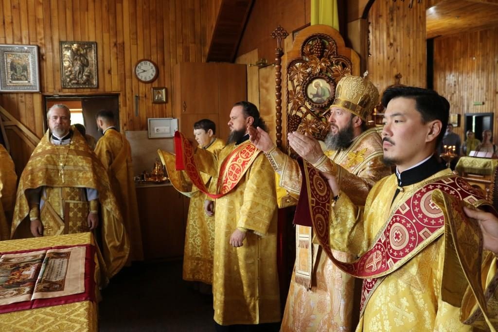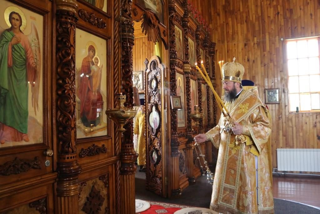 В день памяти всех святых Русской земли Управляющий Усть-Каменогорской и Семипалатинской епархией Высокопреосвященнейший архиепископ Амфилохий возглавил служение Божественной Литургии святителя Иоанна Златоуста в храме в честь Покрова Божией Матери города Усть-Каменогорска.