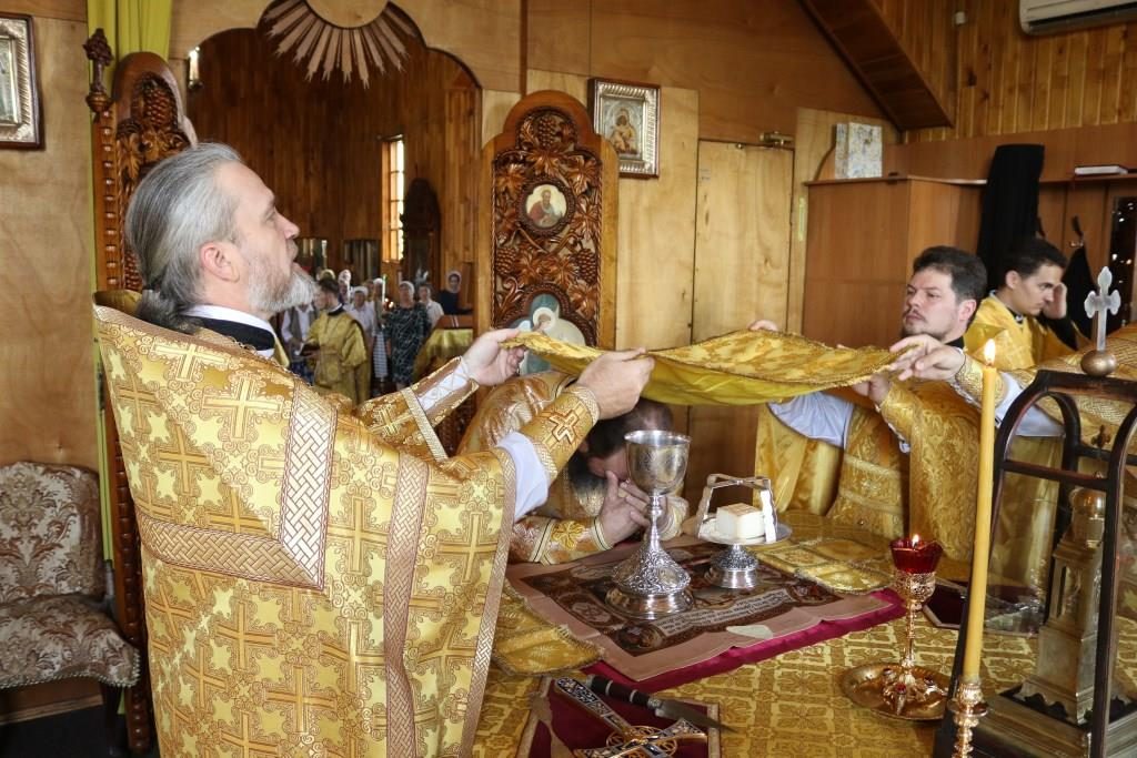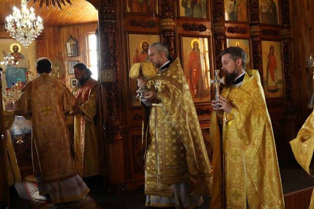 Хор Покровского храма под управлением регента А. Король исполнял песнопения Божественной Литургии. За праздничным воскресным богослужением молились прихожане и паломники Покровского храма.