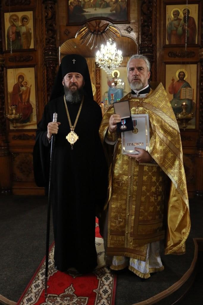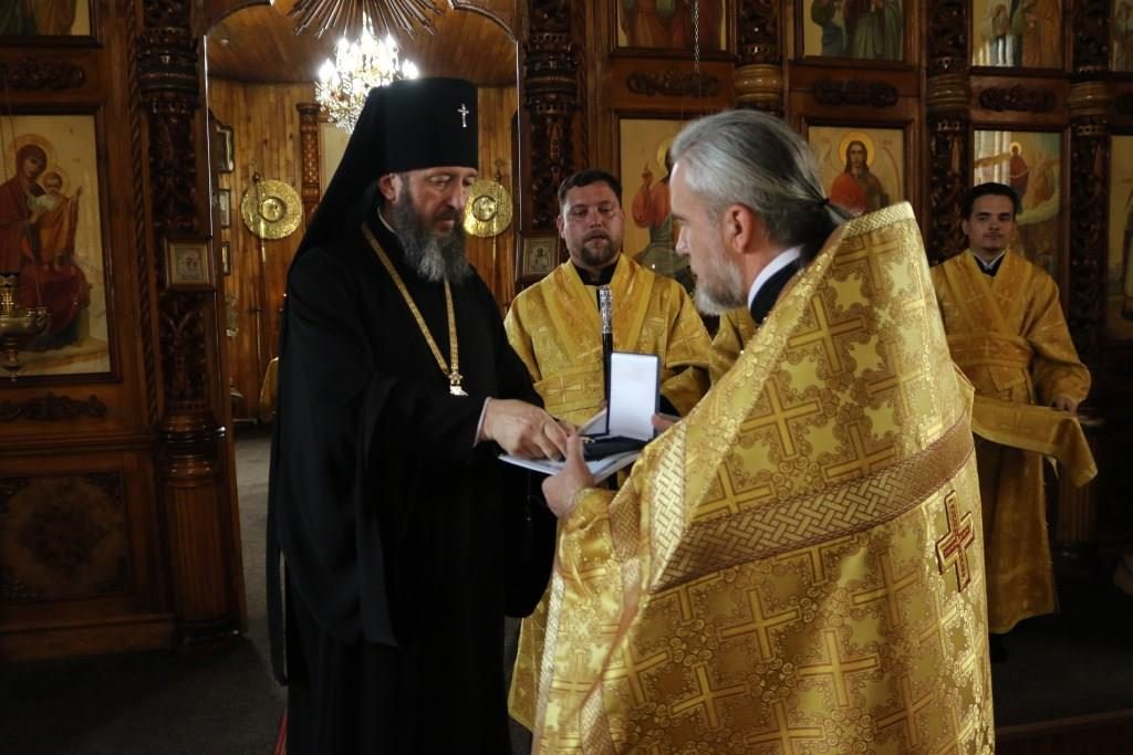 По окончании Литургии архиепископ Амфилохий поблагодарил иерея Алексия Анищенко за многолетние труды в должности настоятеля Покровского храма г. Усть-Каменогорска и вручил ему высокую награду Казахстанского Митрополичьего Округа – «орден свт. Николая, митрополита Алматинского», пожелав на новом месте служения крепости сил, здоровья и многих лет служения Церкви Христовой.