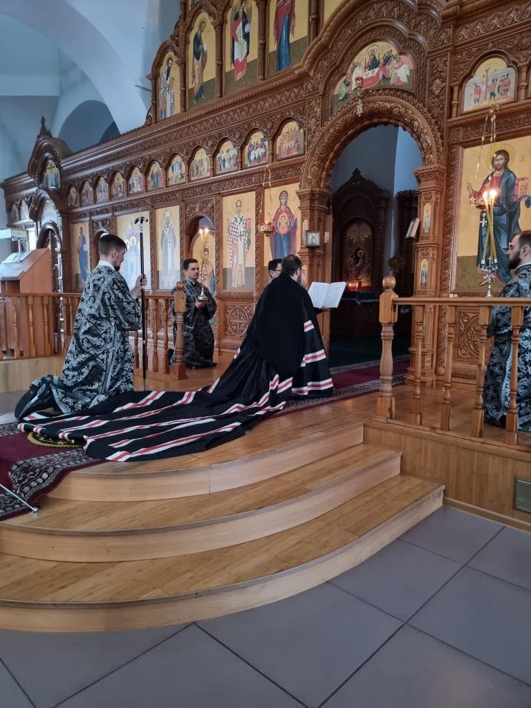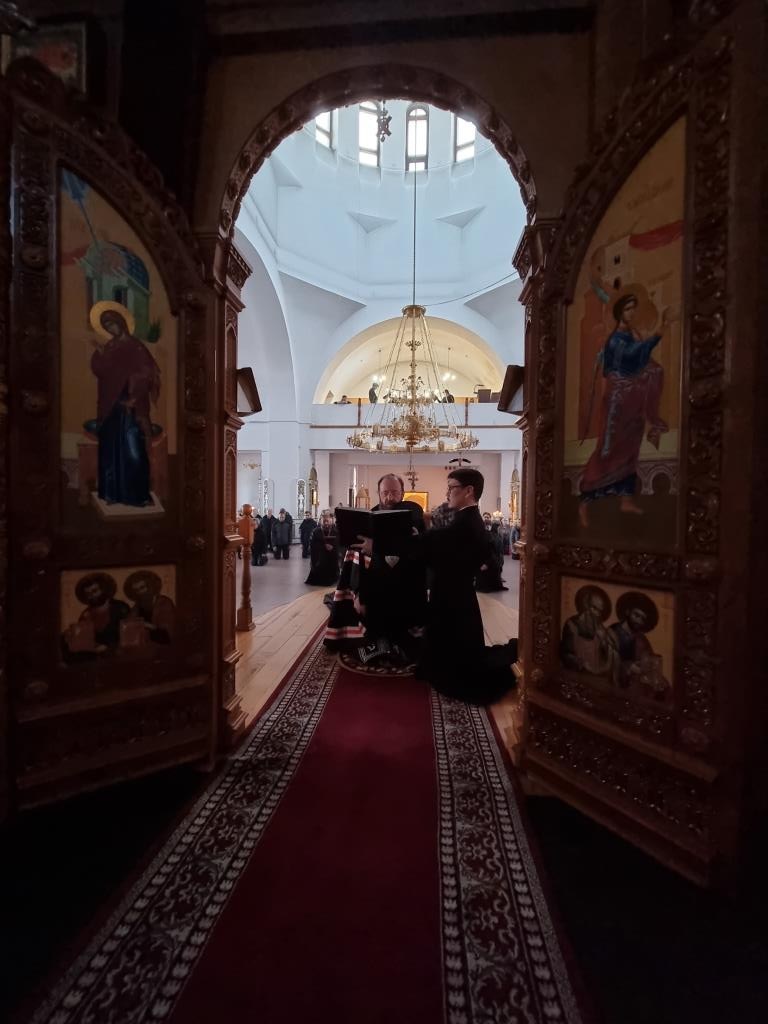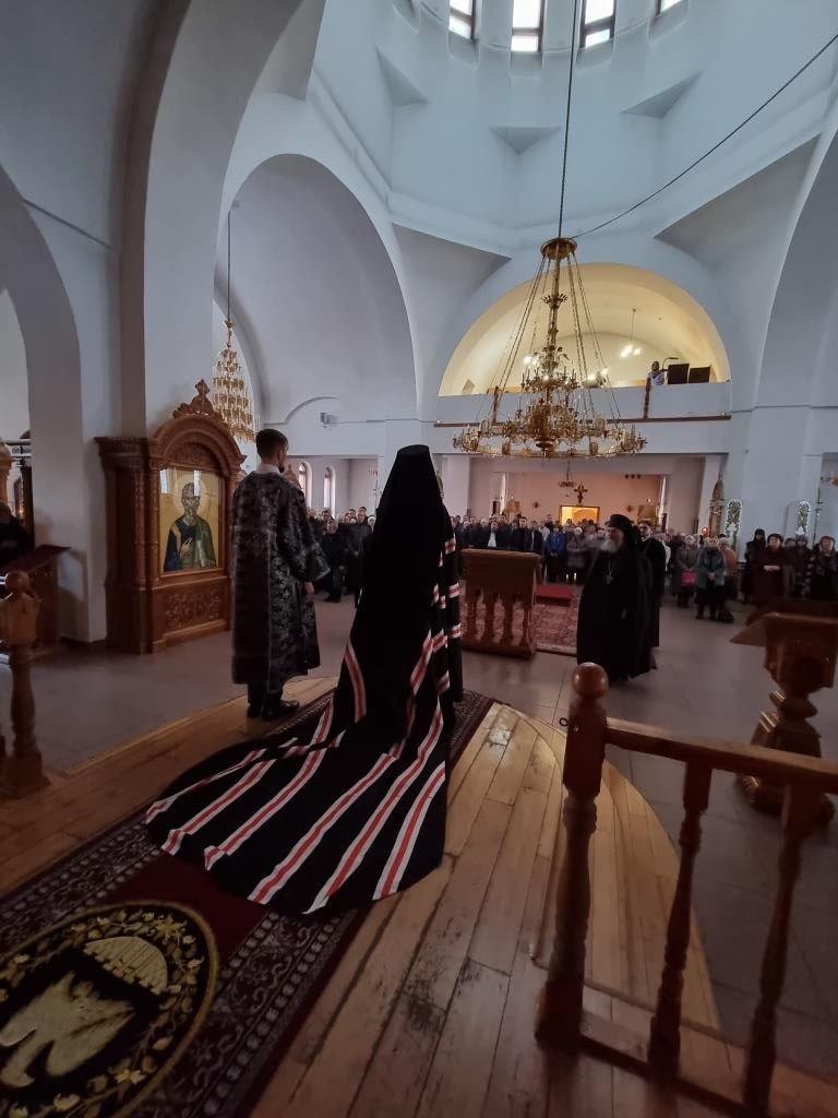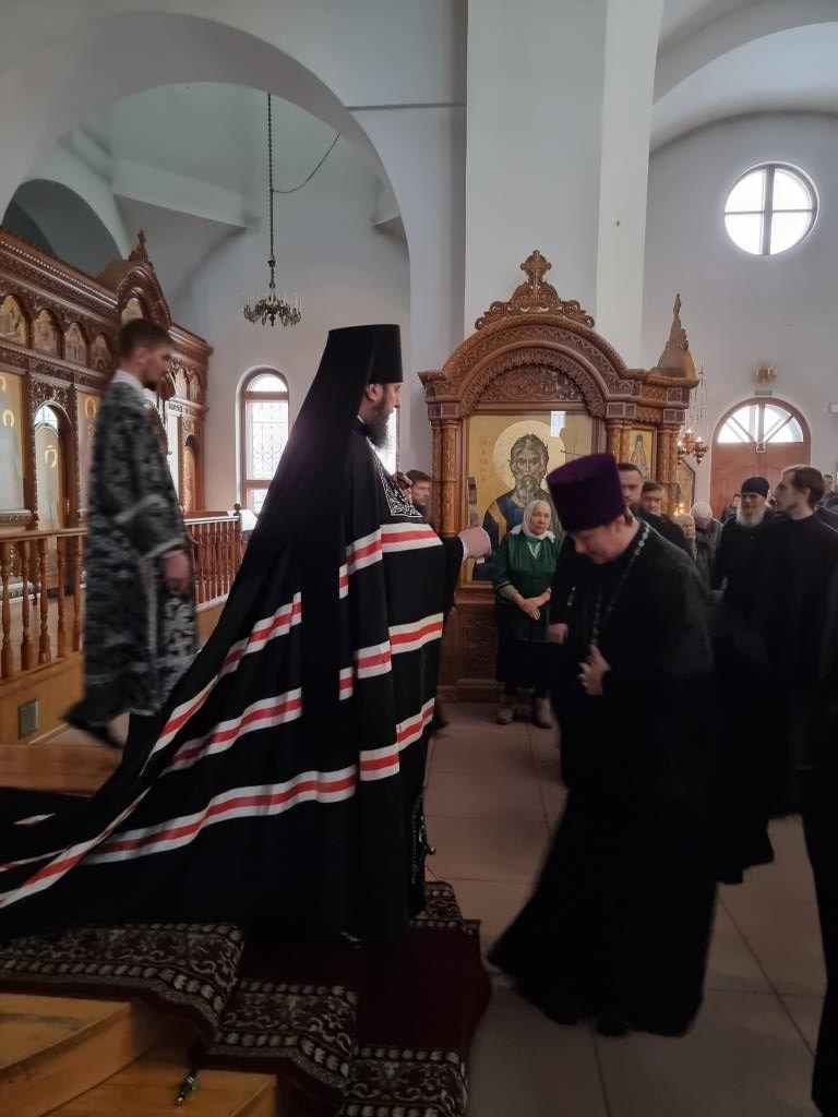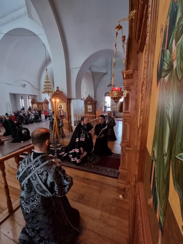 После пения великого прокимна и закрытия Царских врат духовенство переоблачилось в великопостные черные ризы. По отпусте вечерни архиепископ Амфилохий прочитал молитвы на начало Святой Четыредесятницы и затем обратился к прихожанам со словами проповеди.