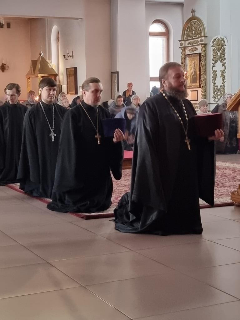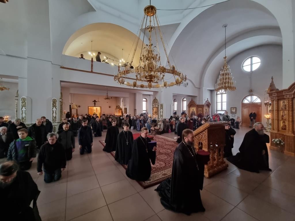 За богослужением молились благочинный Усть-Каменогорского церковного округа протоиерей Евгений Яганов, ключарь Андреевского кафедрального собора иеромонах Никодим (Авдеев), настоятели и клирики городских храмов; братия Свято-Троицкой обители, руководители епархиальных отделов, сотрудники Усть-Каменогорского епархиального управления, преподаватели и воспитанники воскресных школ. По сложившейся традиции получить архипастырское благословение на прохождение Великого поста прибыли многочисленные прихожане церквей города.