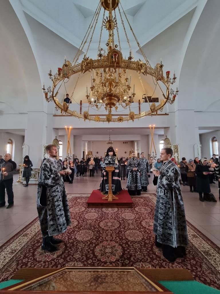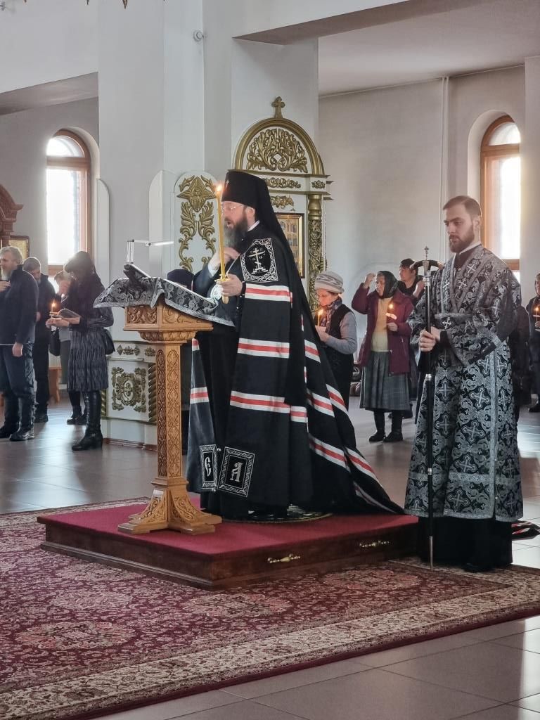Во вторник первой седмицы Великого поста в Свято-Андреевском кафедральном соборе города Усть-Каменогорска архиепископ Усть-Каменогорский и Семипалатинский Амфилохий возглавил служение Великого повечерия с чтением второй части Великого покаянного канона преподобного Андрея Критского.