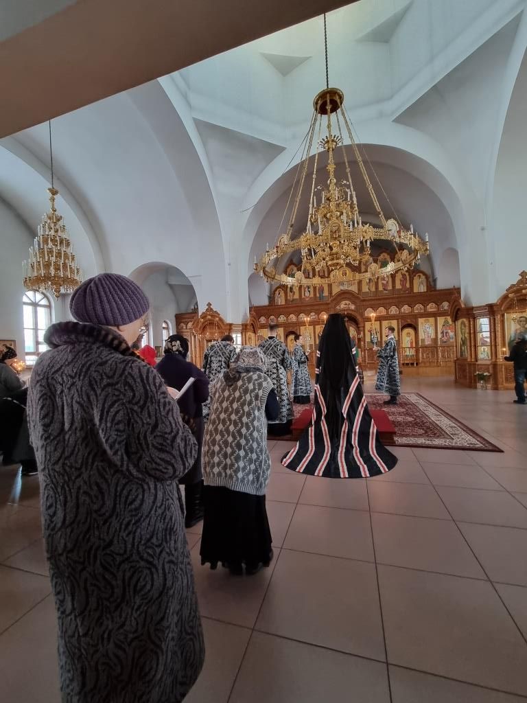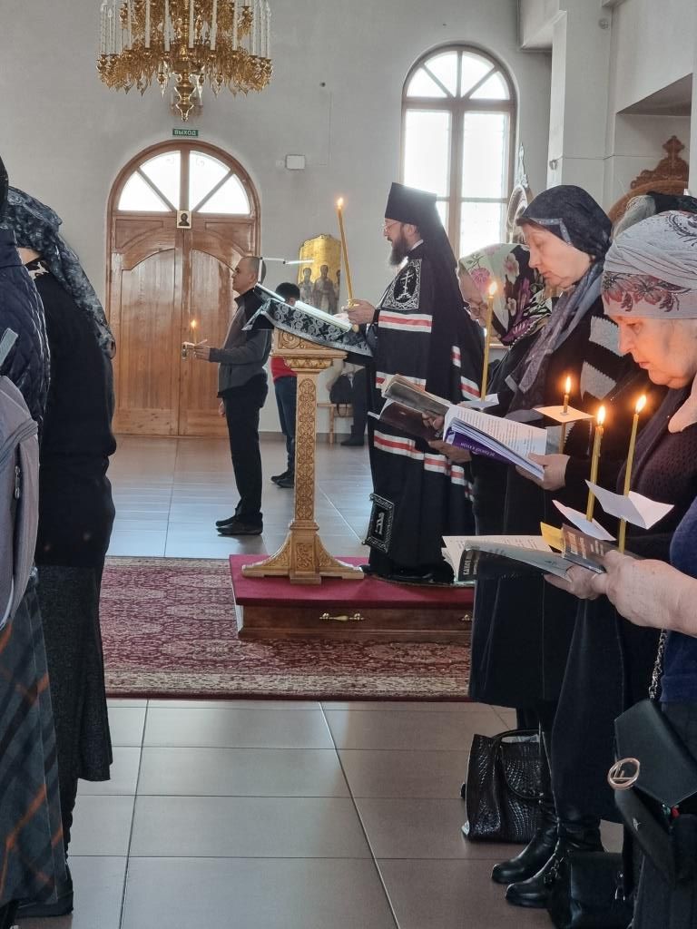 За богослужением молились священнослужители кафедрального собора, насельники Свято-Троицкого мужского монастыря города Усть-Каменогорска, сотрудники епархиального управления и прихожане Андреевского собора. Песнопения Великого повечерия и покаянного канона исполнял хор кафедрального собора под управлением регента Н. Романцовой.