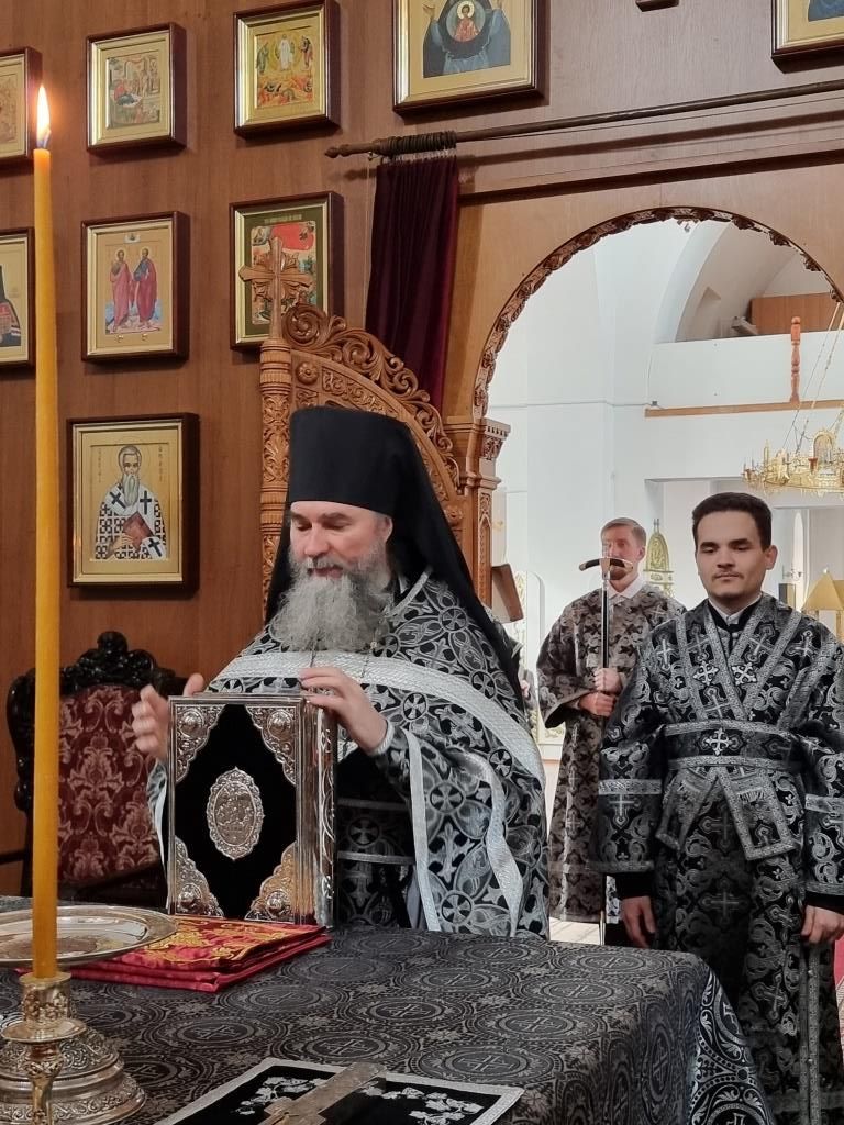 После окончания Божественной Литургии архиепископ Амфилохий обратился к богомольцам со словами проповеди.
