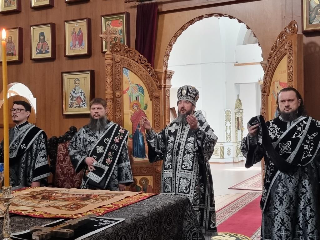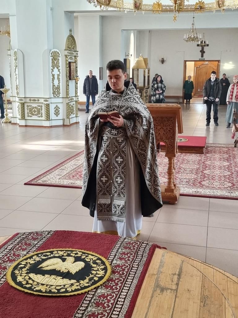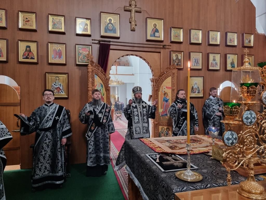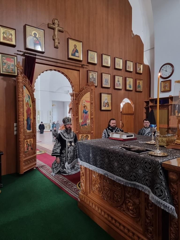 Литургия Преждеосвященных Даров была предварена совершением великопостных утрени и часов. За евхаристическим богослужением молились насельники Свято-Троицкого мужского монастыря города Усть-Каменогорска, прихожане кафедрального собора и сотрудники епархиального управления. Песнопения исполнял хор кафедрального собора, регент Н. Романцова.