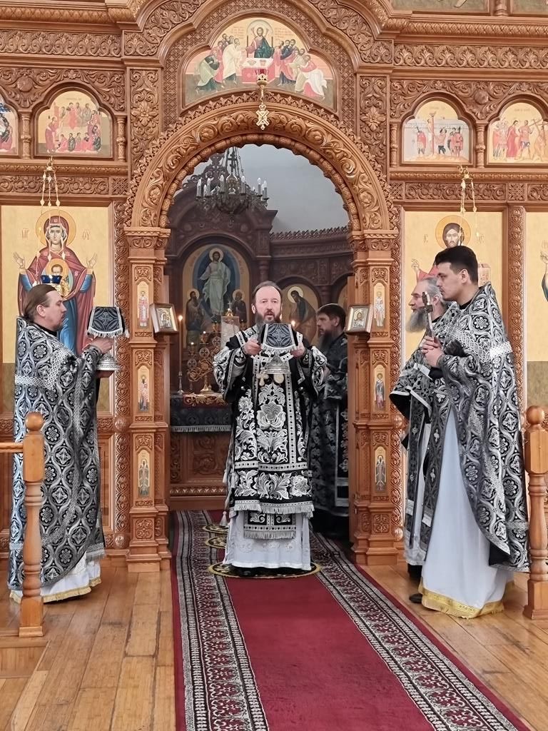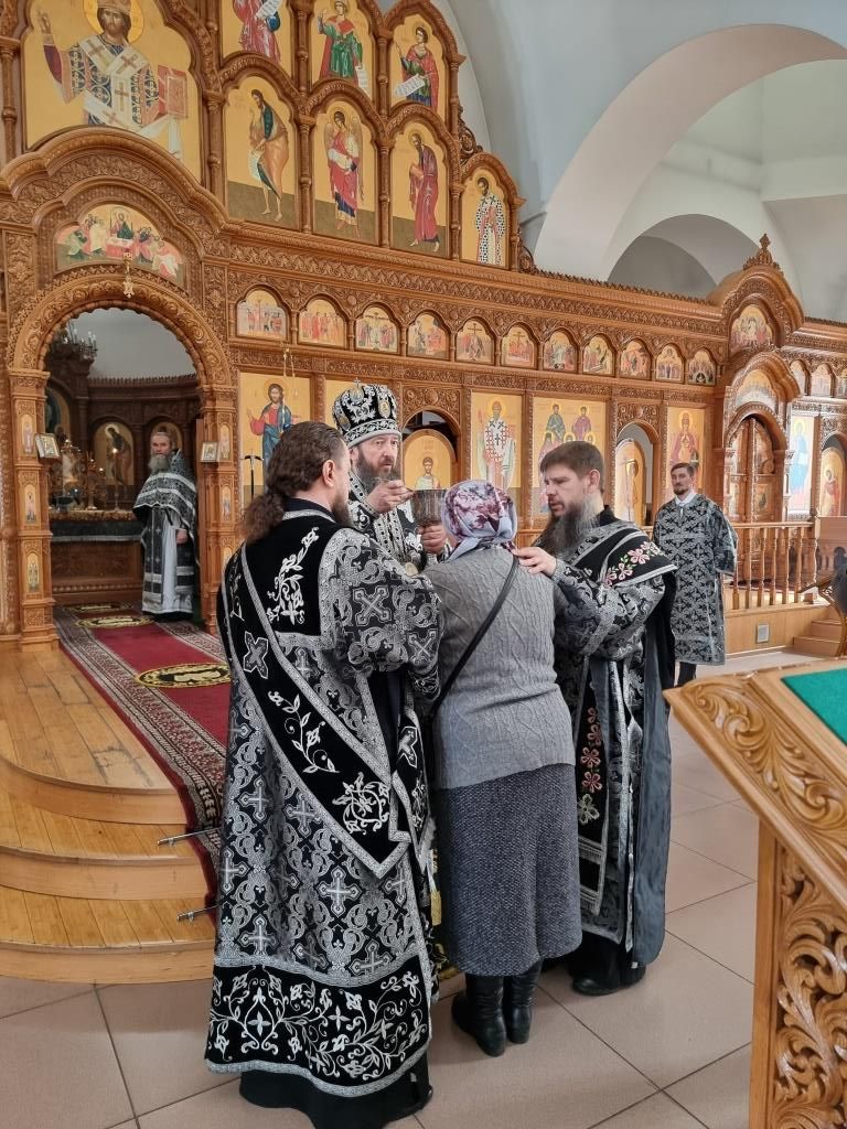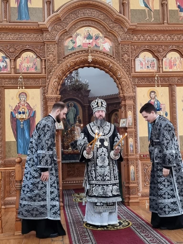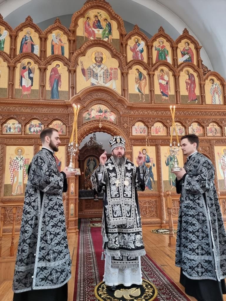 В третий день Великого поста Высокопреосвященнейший архиепископ Амфилохий, Управляющий Усть-Каменогорской и Семипалатинской епархией, возглавил служение уставного великопостного богослужения – Божественной Литургии Преждеосвященных Даров святителя Григория Двоеслова в Андреевском кафедральном соборе города Усть-Каменогорска. Архипастырю сослужили: ключарь кафедрального собора иеромонах Никодим (Авдеев), клирик собора иерей Алексий Клепиков, иеромонах Александр (Вальков), секретарь епархии диакон Илия Кван, протодиаконы Георгий Засыпкин и Андрей Дудник.