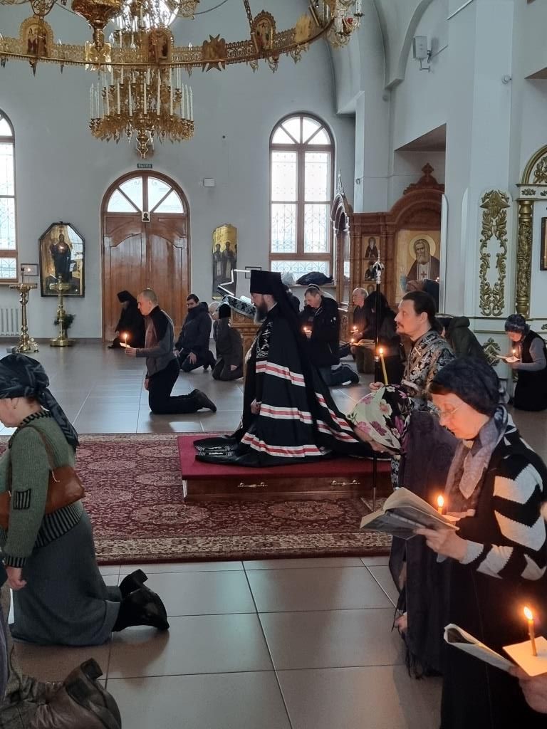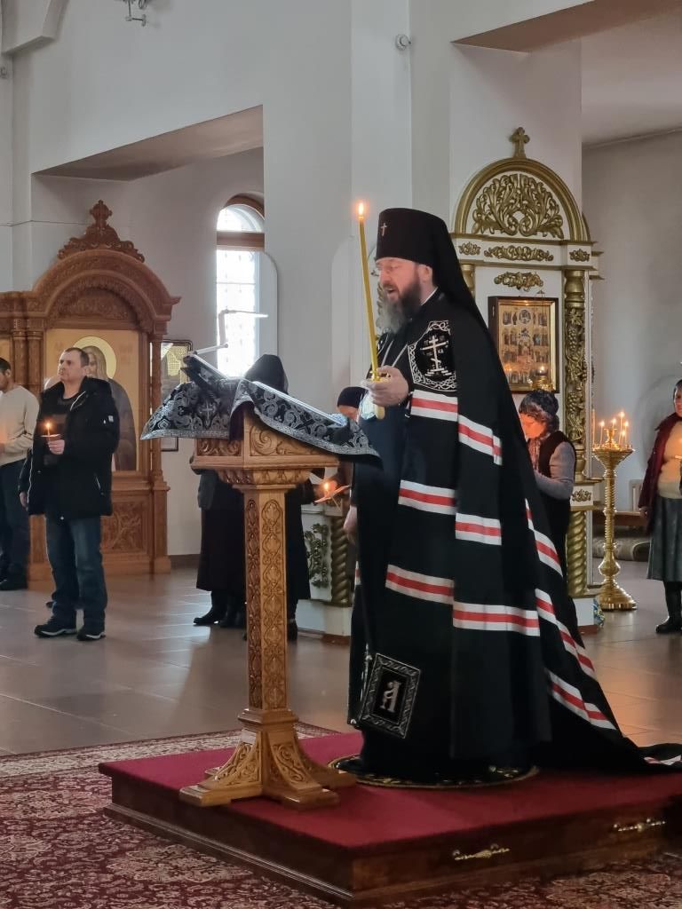 В четверг первой седмицы Великого поста Управляющий Усть-Каменогорской и Семипалатинской епархией Высокопреосвященнейший архиепископ Амфилохий совершил в Андреевском кафедральном соборе Великое повечерие с чтением четвертой части Великого покаянного канона преподобного Андрея Критского.