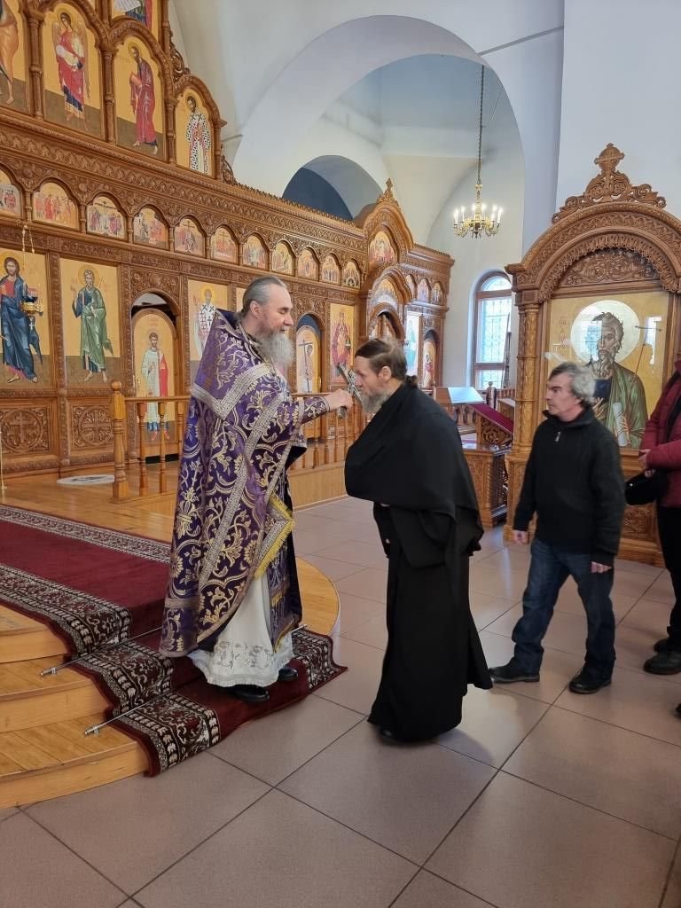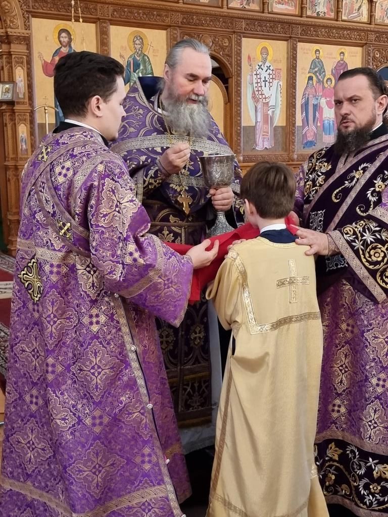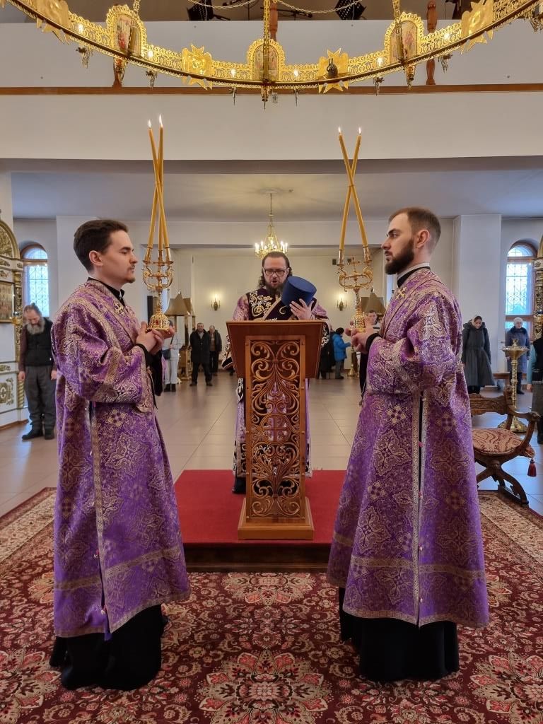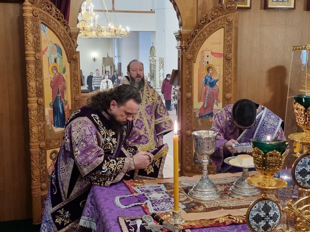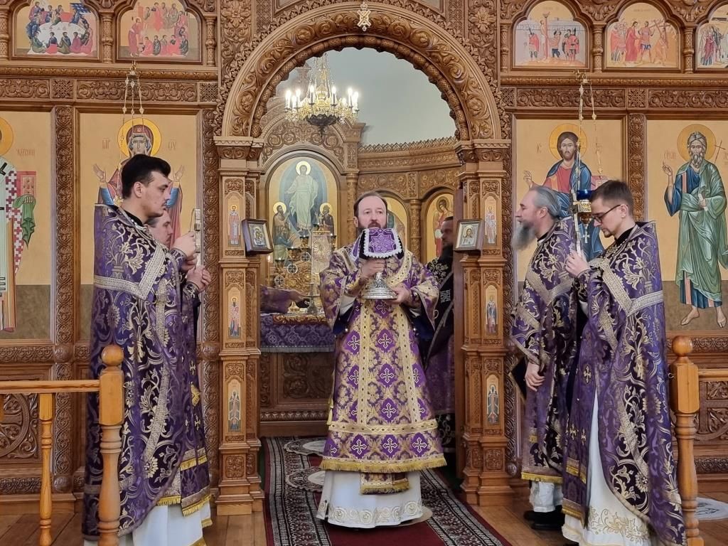 Богослужебные песнопения исполнял хор кафедрального собора (регент Н. Романцова). В субботу в храме молились и причащались Святых Таин прихожане кафедрального собора, сотрудники епархиального управления и братия Свято-Троицкой обители. Проповедь перед причастием мирян произнёс священник Константин Дьяков.