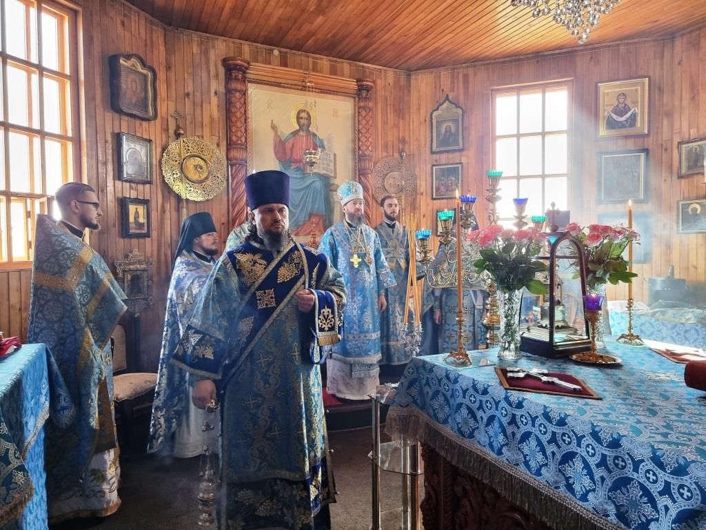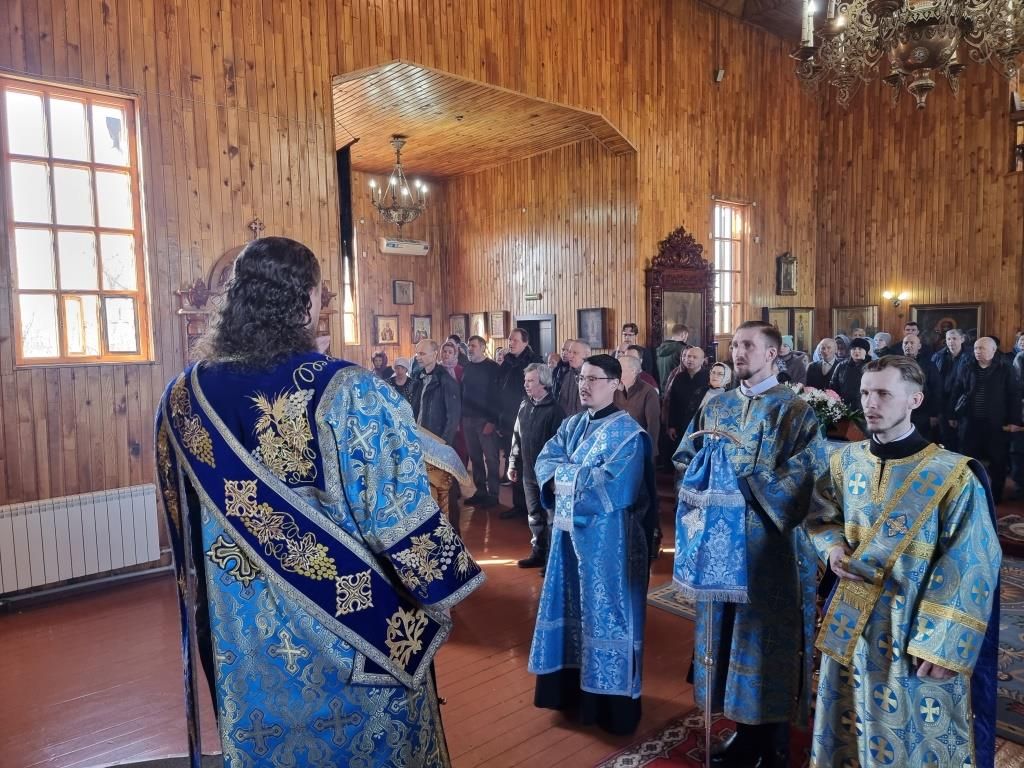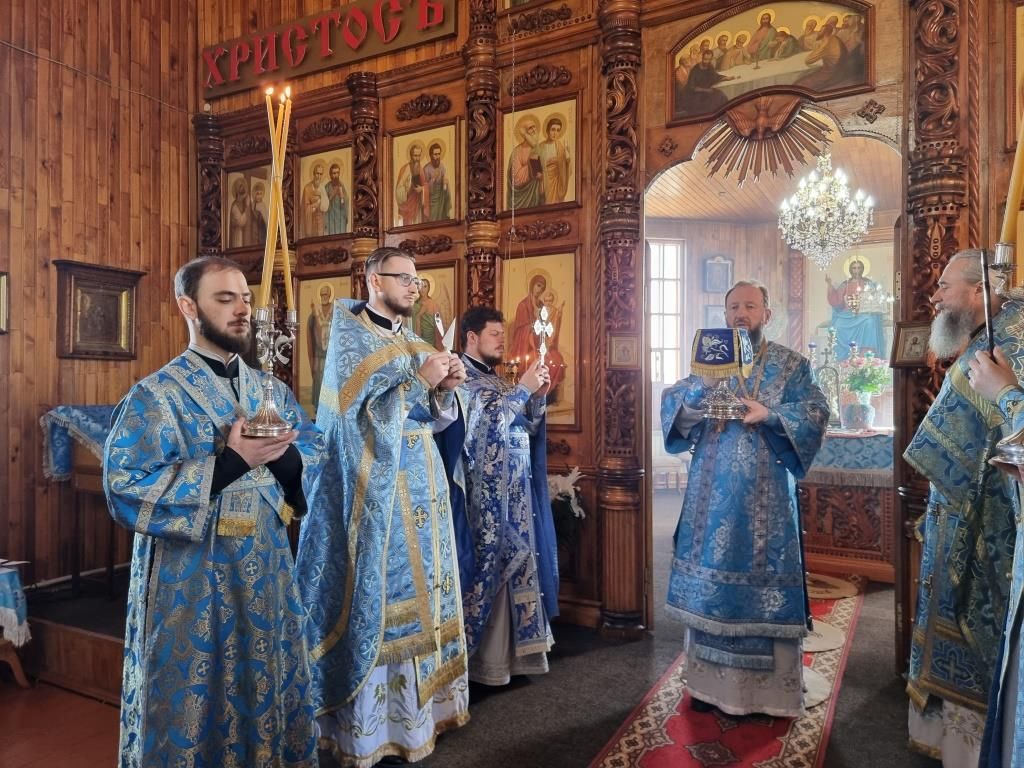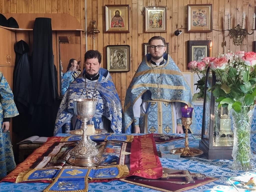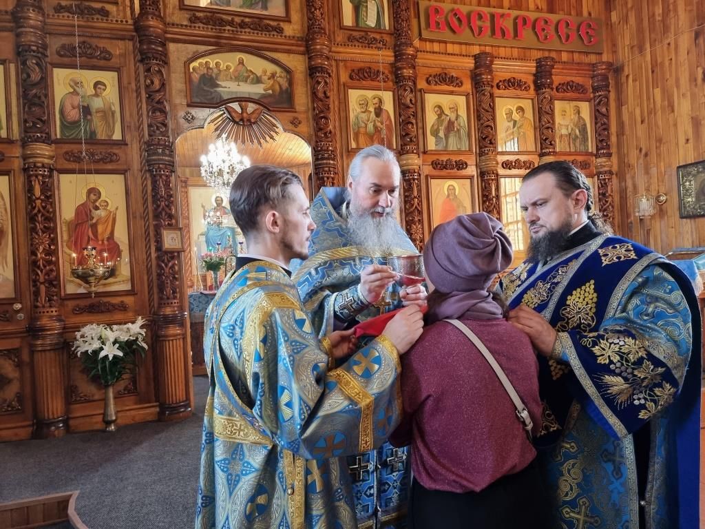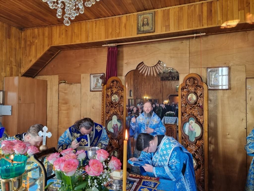 Литургические песнопения исполнял хор под управлением А. Король. За богослужением молились прихожане и паломники Покровского храма. Перед причастием мирян проповедь произнёс священник Константин Дьяков.