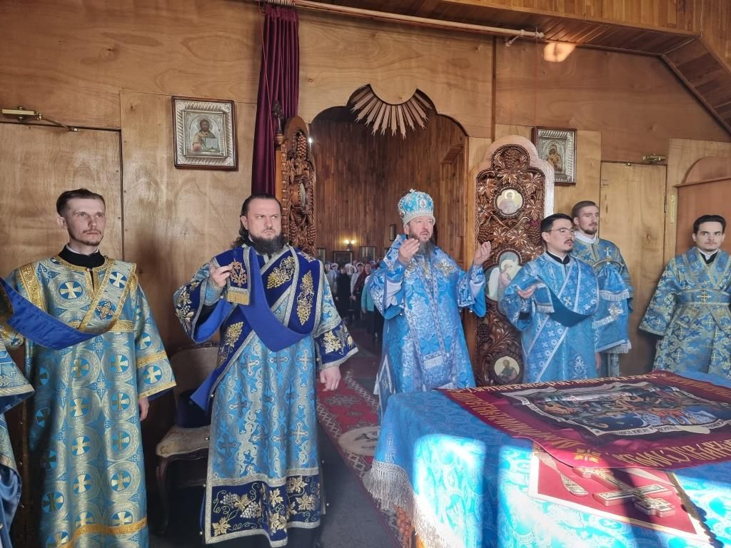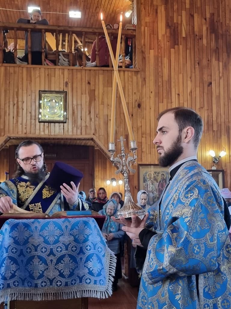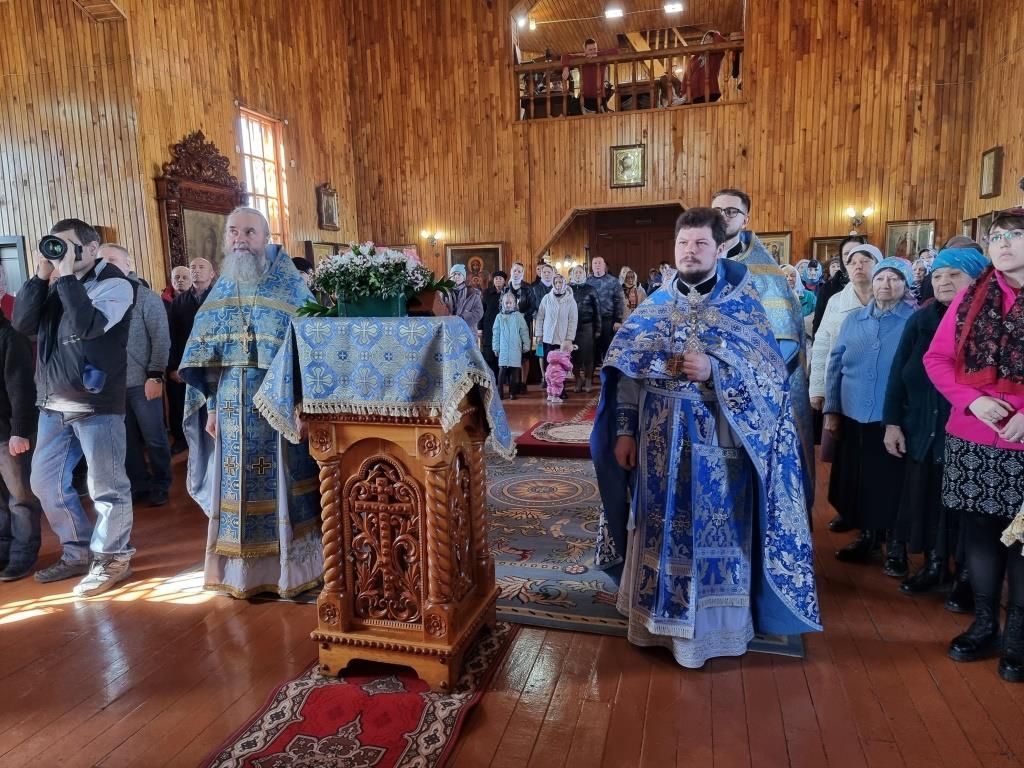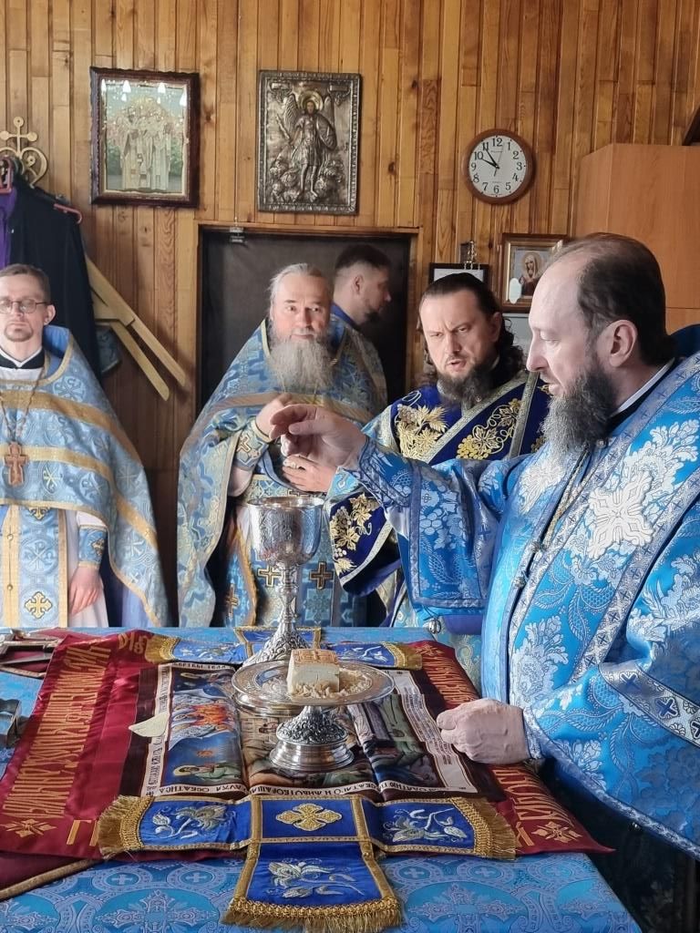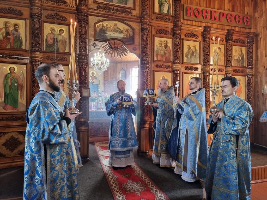 Литургические песнопения исполнял хор под управлением А. Король. За богослужением молились прихожане и паломники Покровского храма. Перед причастием мирян проповедь произнёс священник Константин Дьяков.