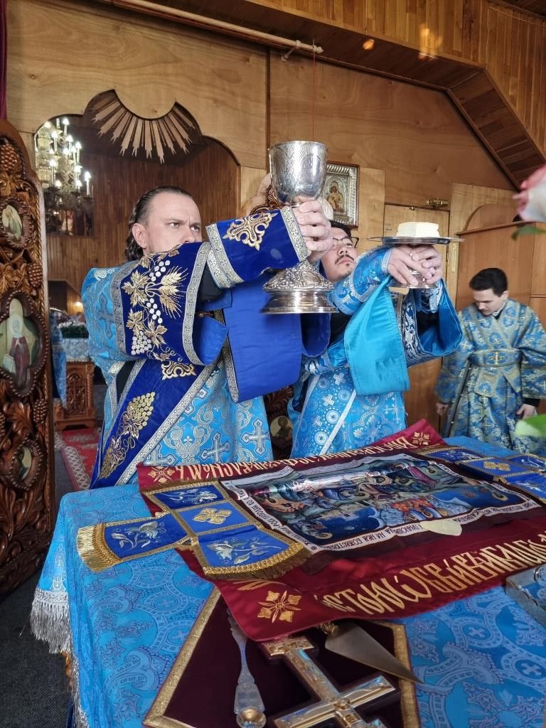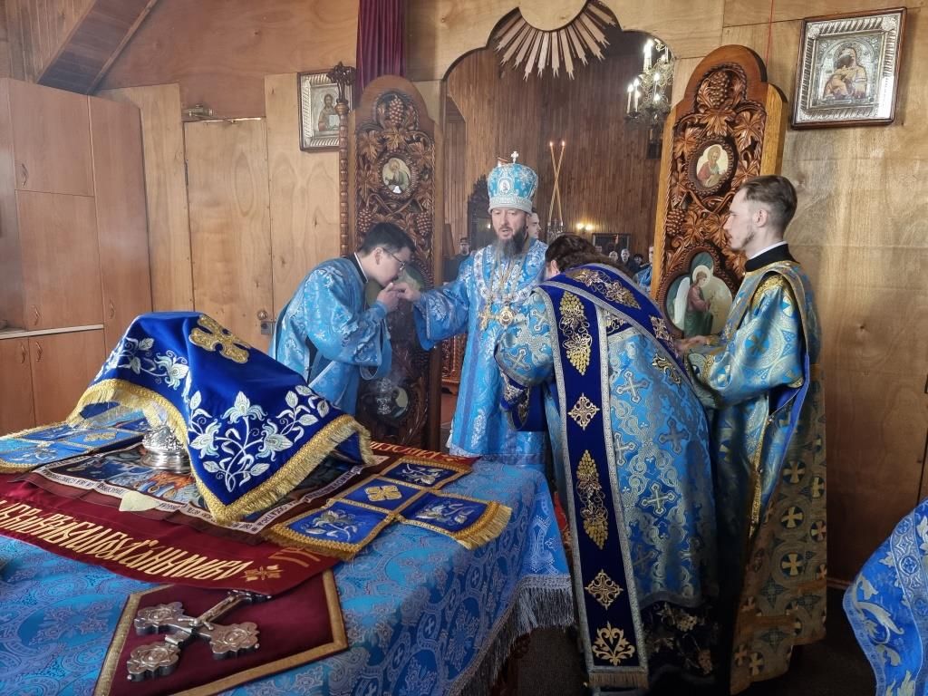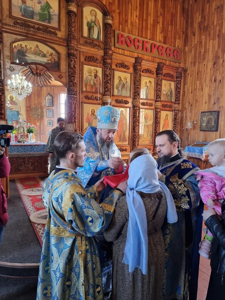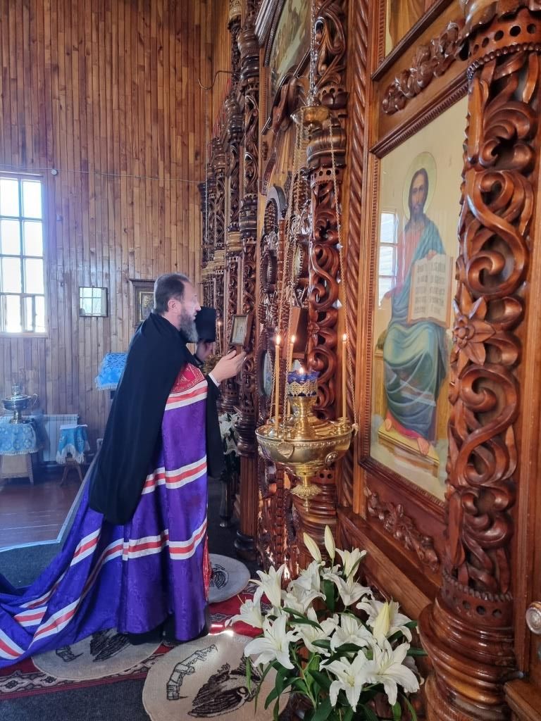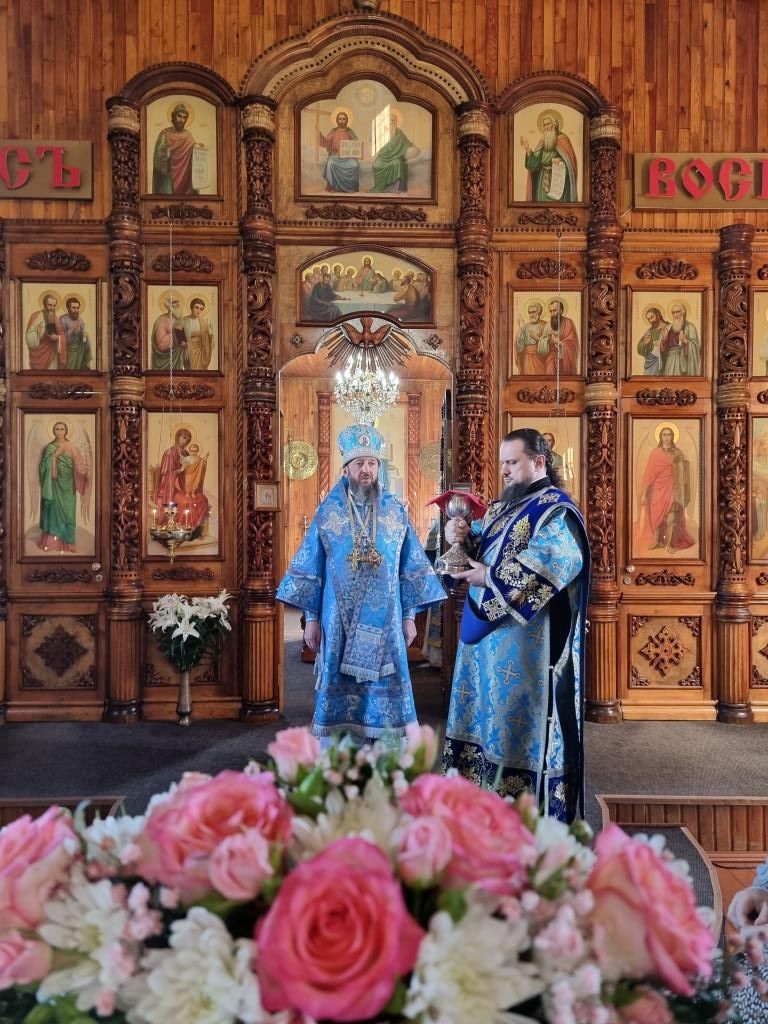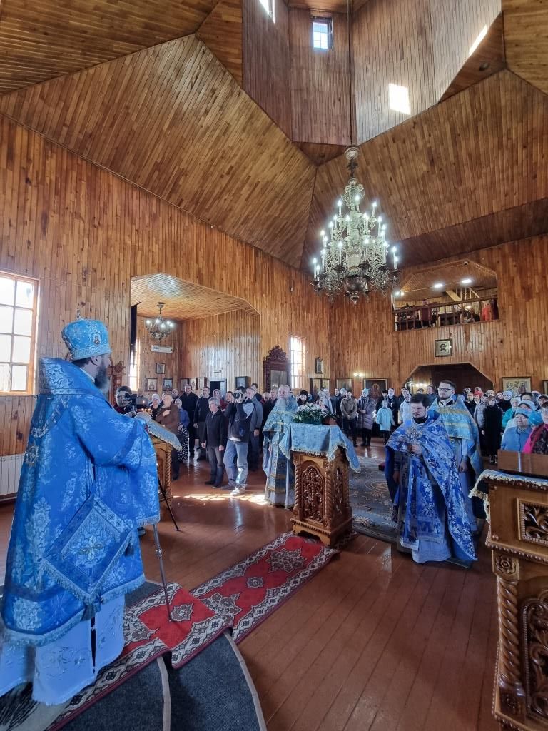 Литургические песнопения исполнял хор под управлением А. Король. За богослужением молились прихожане и паломники Покровского храма. Перед причастием мирян проповедь произнёс священник Константин Дьяков.