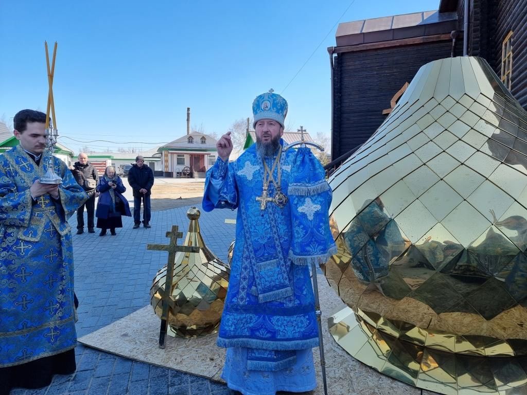 Затем Архипастырь с клириками совершил чин освящения новых куполов, изготовленных для Покровского собора на пожертвования благодетелей и прихожан. Архиепископ Амфилохий прочёл молитву на освящение куполов и окропил их святой водой.