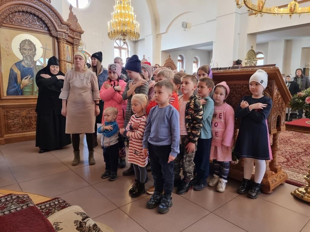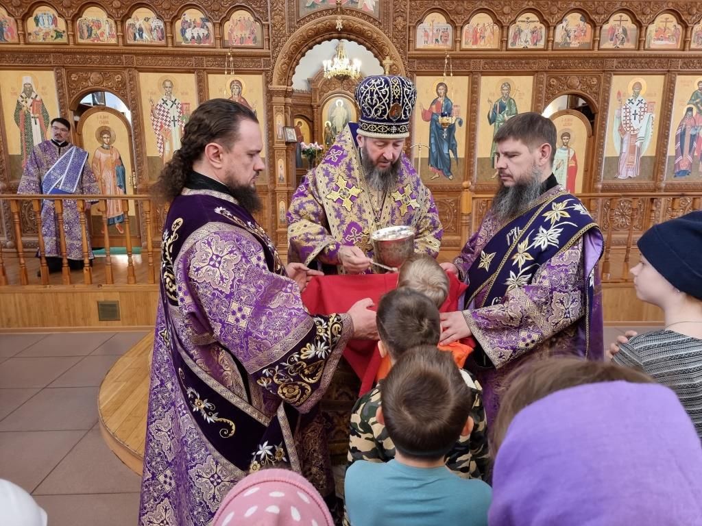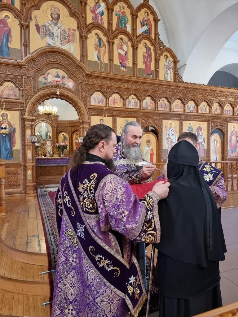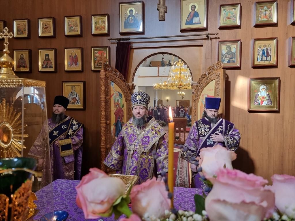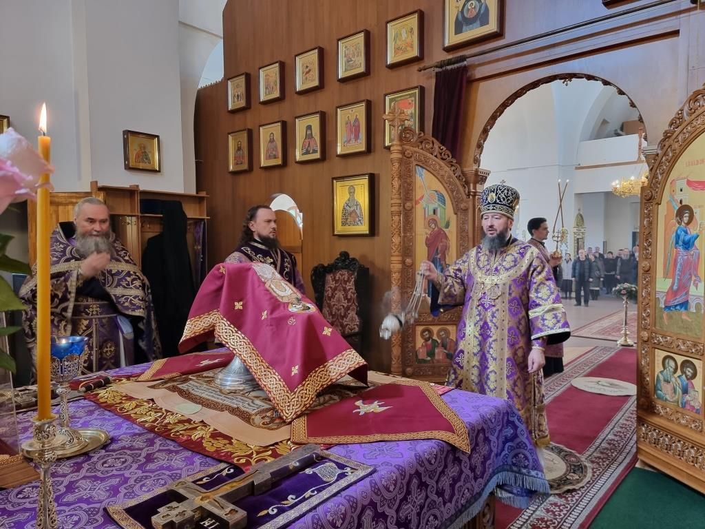За богослужением молились прихожане и паломники кафедрального собора, насельники Свято-Троицкого мужского монастыря города Усть-Каменогорска, сотрудники епархиального управления, преподаватели и воспитанники Центральной воскресной школы. Перед причастием мирян священник Константин Дьяков произнёс проповедь.