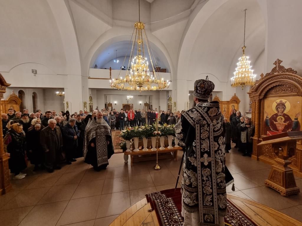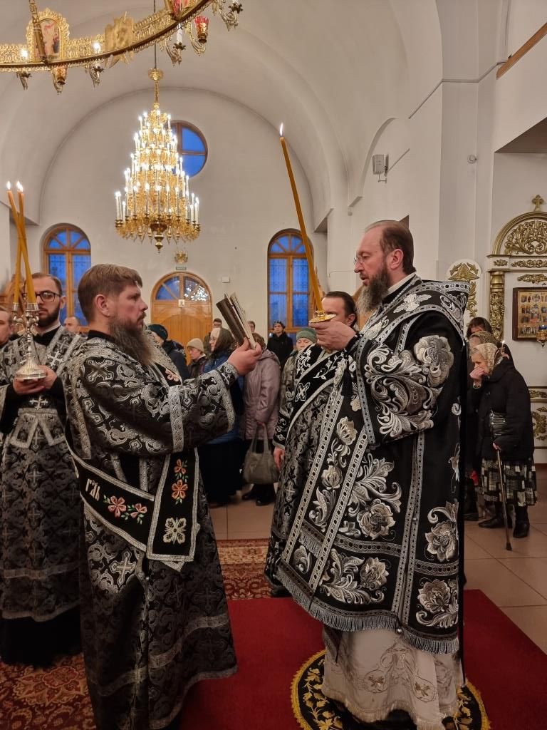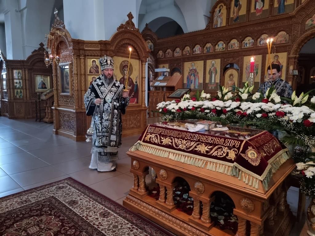 Его Высокопреосвященству сослужили: ключарь кафедрального собора иеромонах Никодим (Авдеев), клирики собора иерей Виталий Адаменков, иерей Алексий Клепиков, иерей Роман Подрезов, секретарь епархии диакон Илия Кван, протодиакон Андрей Дудник и Георгий Засыпкин.