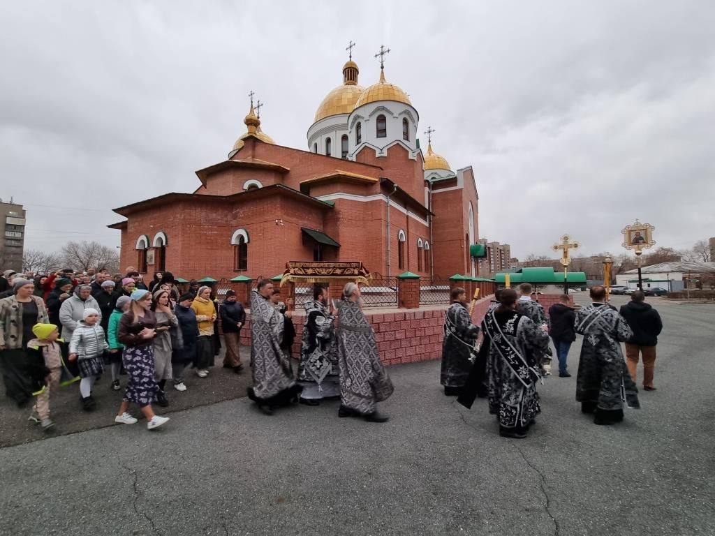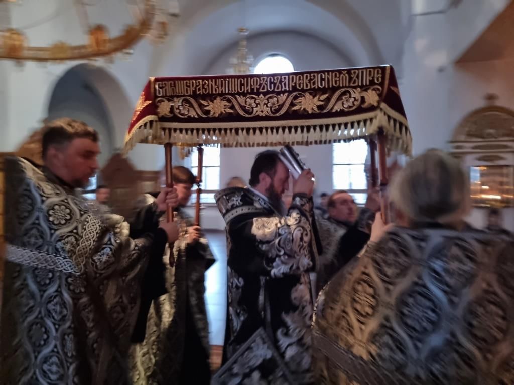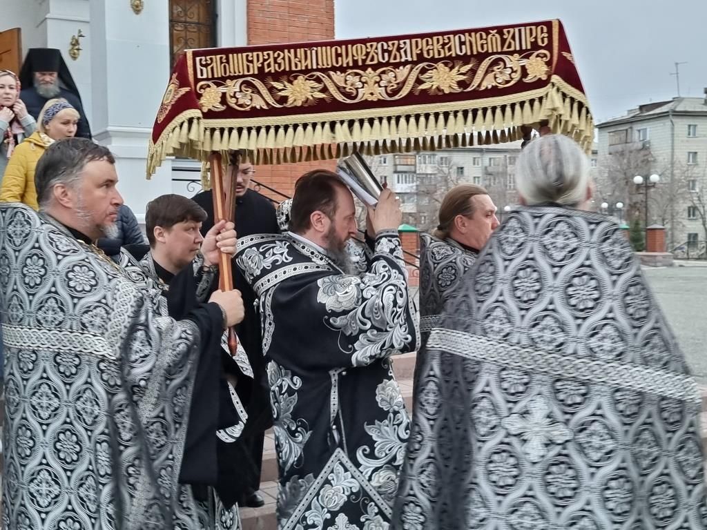Усправляющий Усть-Каменогорской и Семипалатинской епархией, арихиепископ Усть-Каменогорский и Семипалатинский Амфилохий, совершил чин погребения плащаницы Господа нашего Иисуса Христа.
