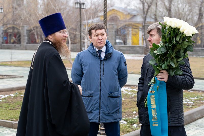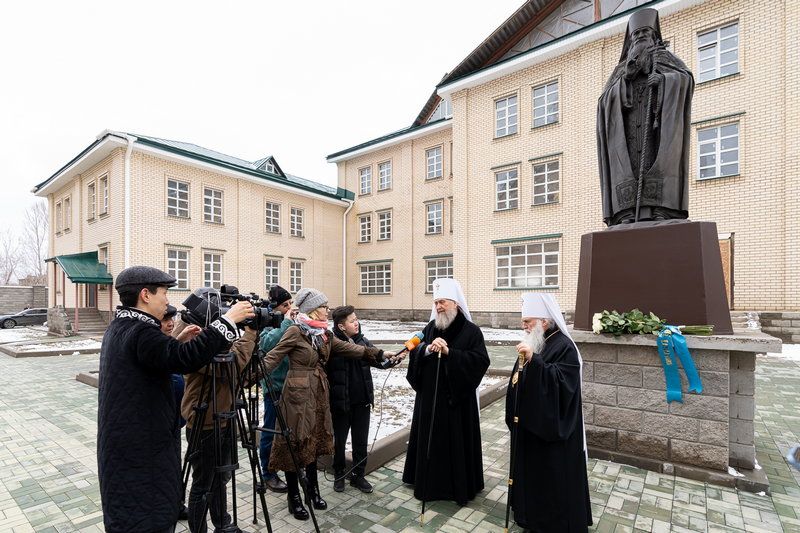 Здесь же, после возложения цветов, состоялся брифинг с участием государственных и частных СМИ. Митрополит Александр и митрополит Викентий поздравили казахстанцев с исторической датой и ответили на вопросы журналистов.