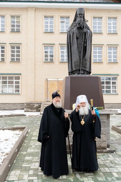 У памятника старцу духовенство исполнило пасхальные тропари и величание святому.