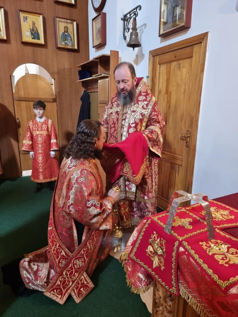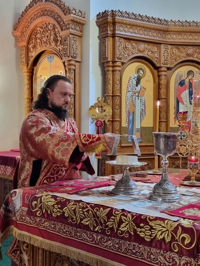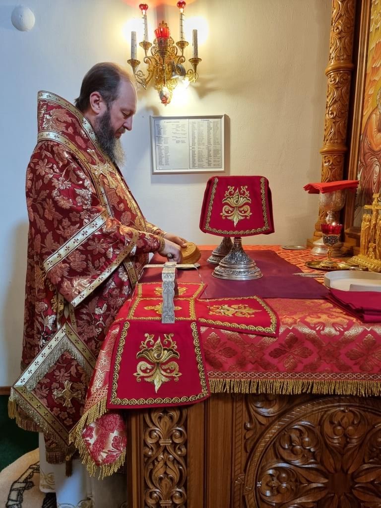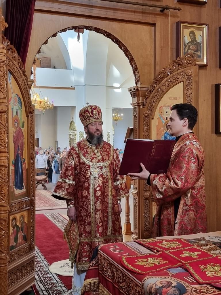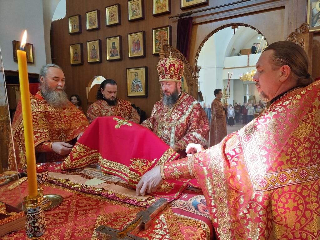 Владыке архиепископу сослужили: ключарь кафедрального собора иеромонах Никодим (Авдеев), иерей Алексий Клепиков, иерей Роман Подрезов; протодиаконы Георгий Засыпкин и Андрей Дудник. Песнопения Божественной Литургии исполнял хор кафедрального собора (регент Н. Романцова).