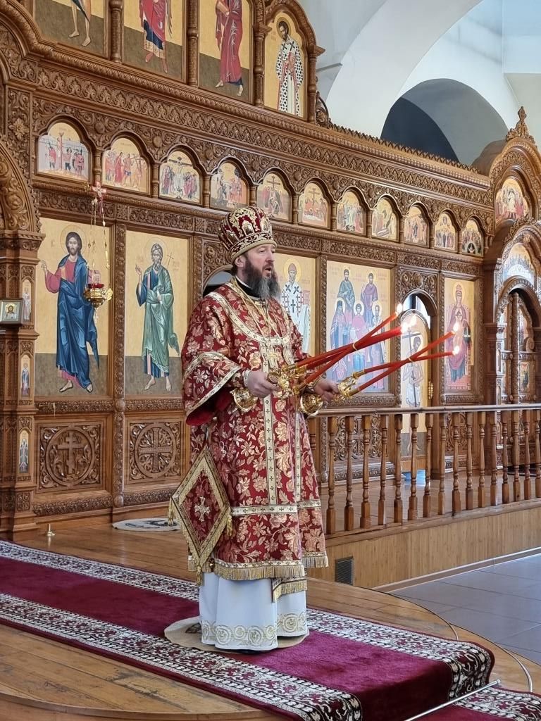 После окончания Божественной Литургии архиепископ Амфилохий поздравил молящихся с праздником и обратился к собравшимся со словами святительского наставления.