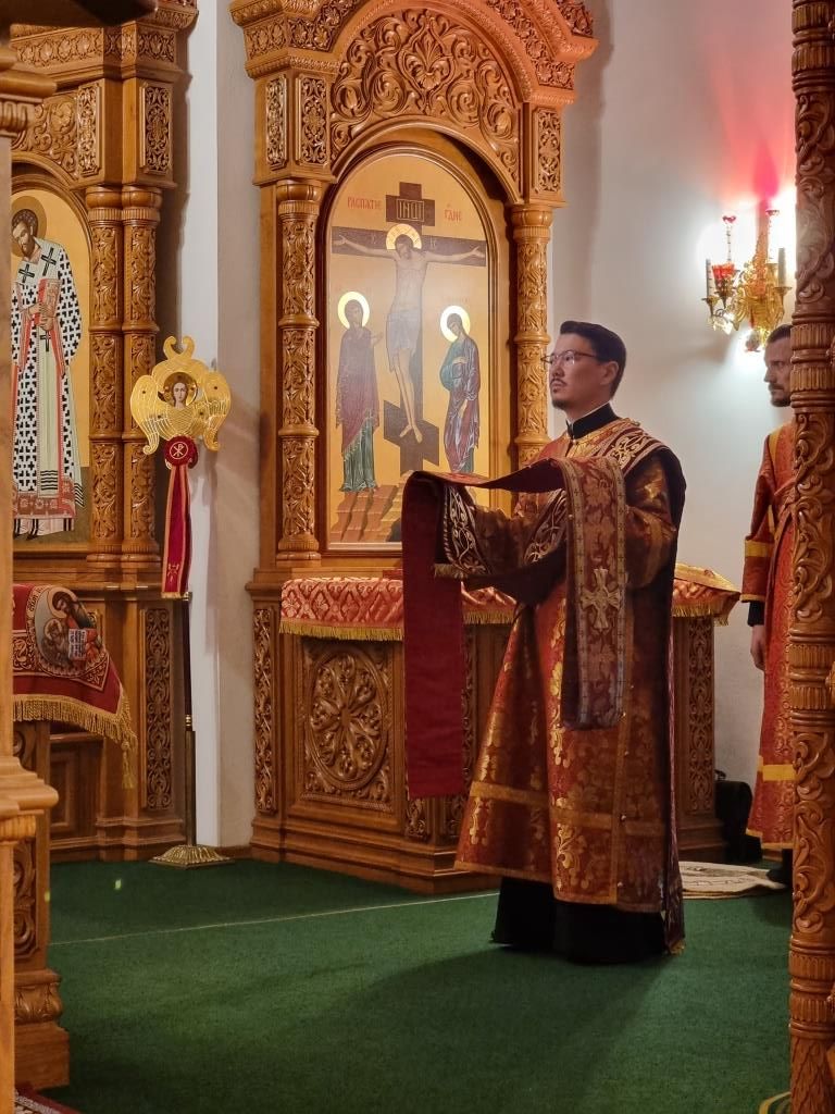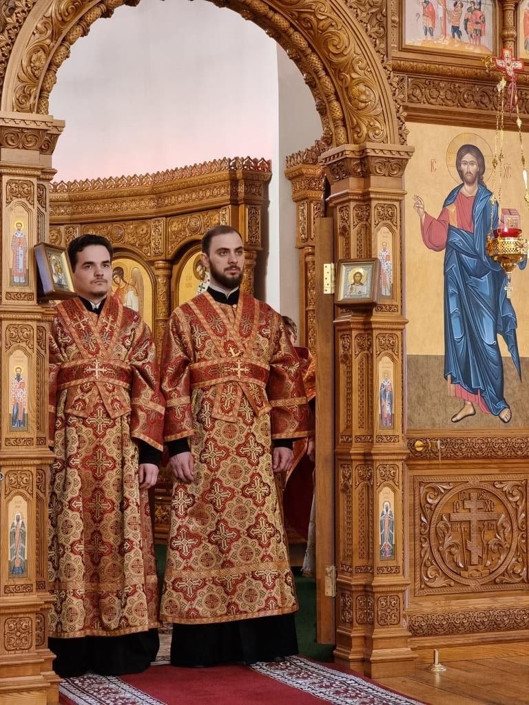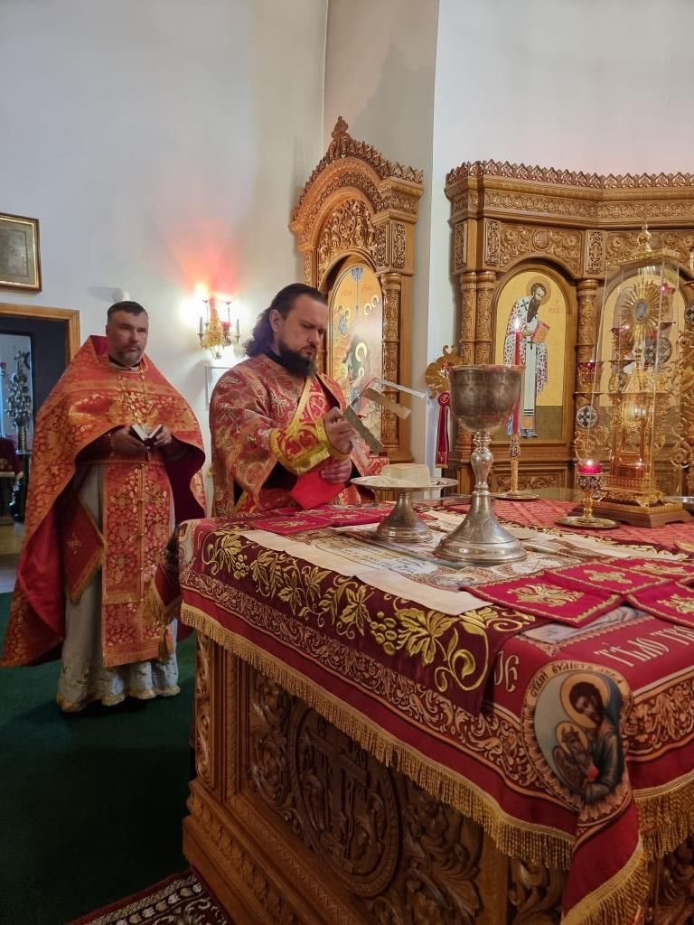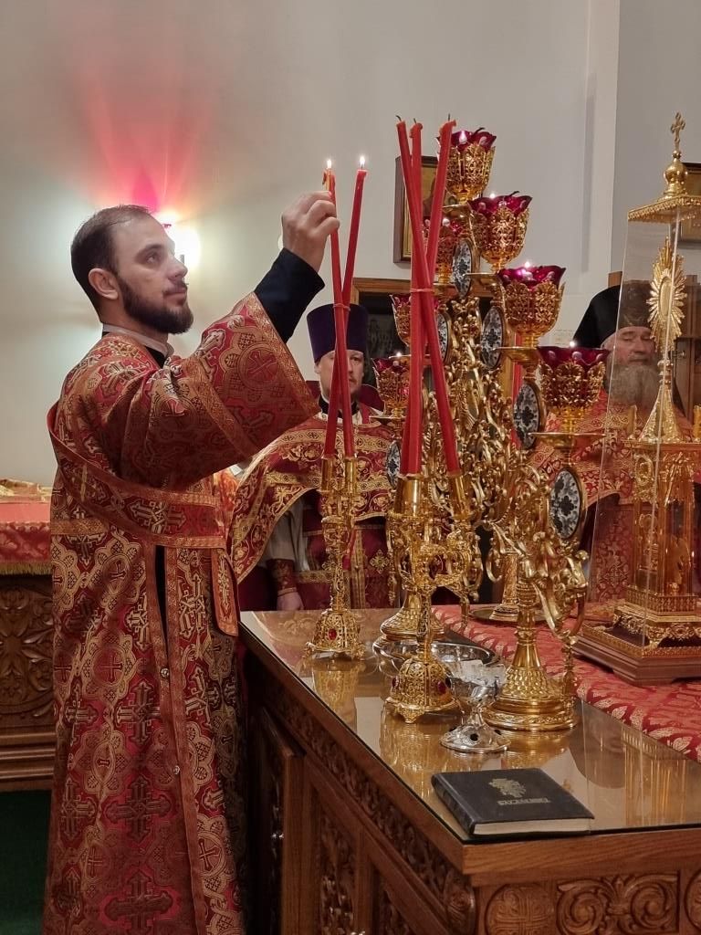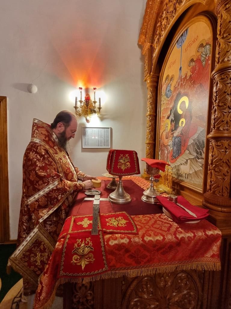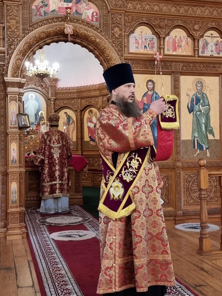 Его Высокопреосвященству сослужили: ключарь кафедрального собора иеромонах Никодим (Авдеев), клирики собора иерей Виталий Адаменков, иерей Роман Подрезов и иерей Константин Дьяков; секретарь епархии диакон Илия Кван, протодиакон Георгий Засыпкин и протодиакон Андрей Дудник.