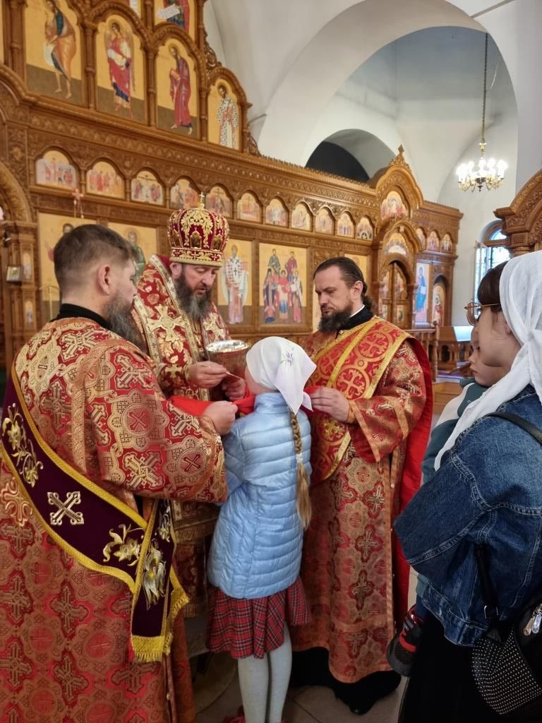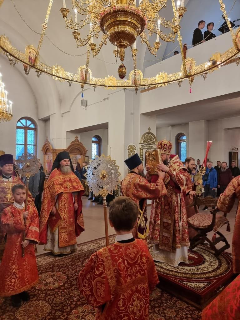 В пятое воскресение после праздника Пасхи Христовой архиепископ Усть-Каменогорский и Семипалатинский Амфилохий совершил Божественную Литургию святителя Иоанна Златоуста в Андреевском кафедральном соборе города Усть-Каменогорска – главном храме Рудного Алтая.