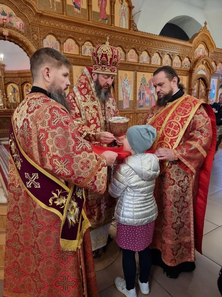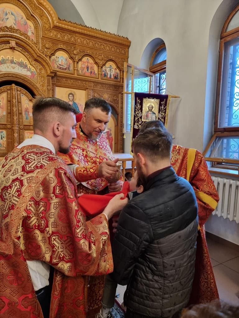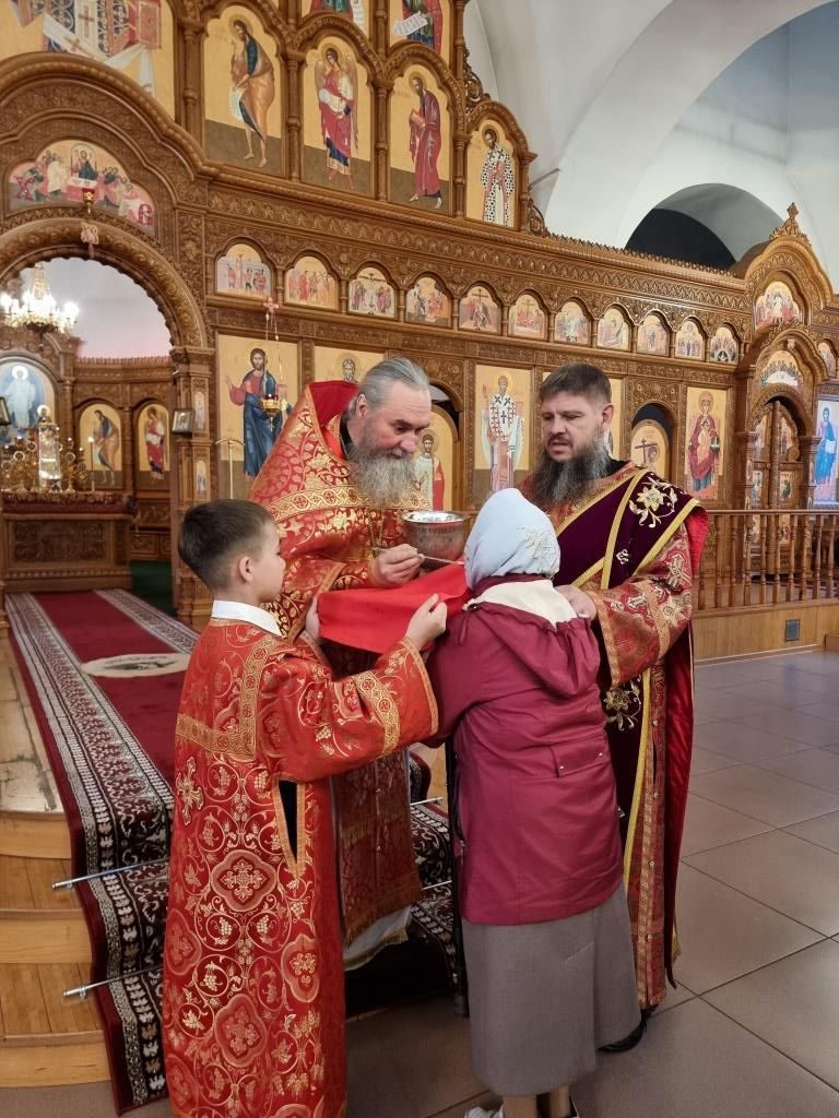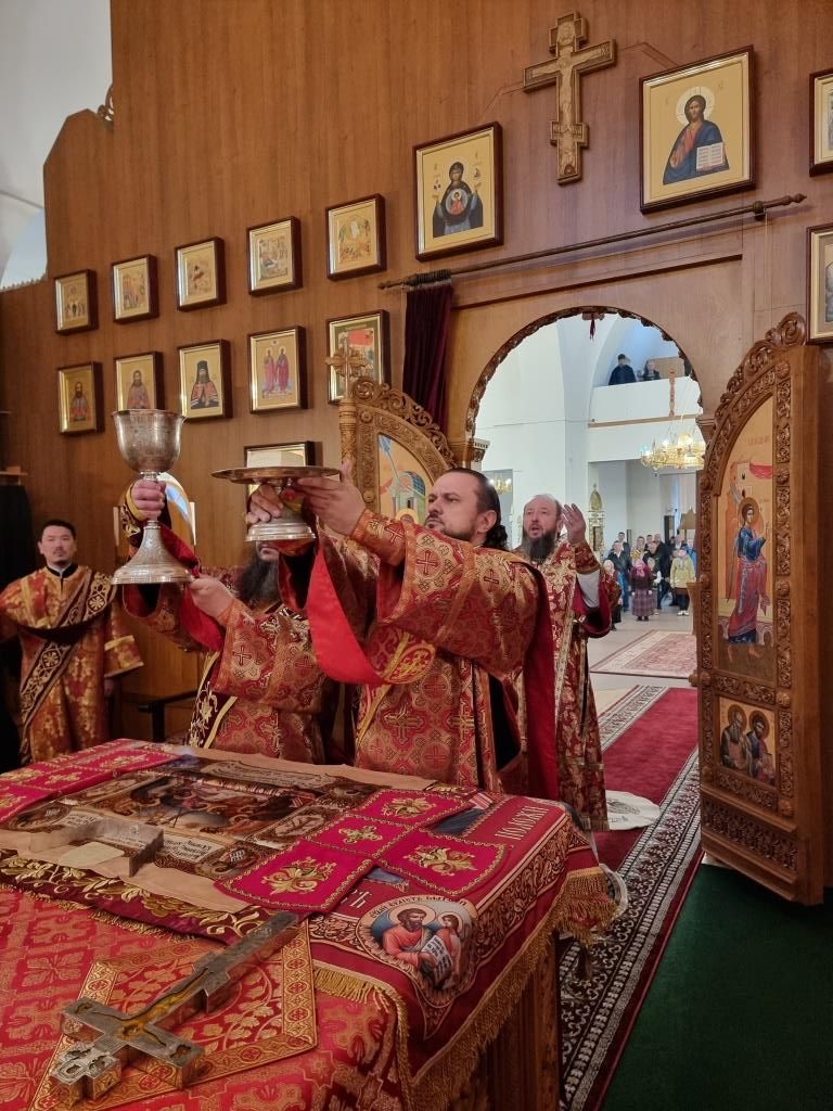 За воскресным богослужением молились и причащались Святых Христовых Таин прихожане кафедрального собора, преподаватели и воспитанники Центральной воскресной школы, сотрудники епархиального управления и насельники Свято-Троицкого мужского монастыря города Усть-Каменогорска. Песнопения Литургии и Недели о самаряныне исполнял хор под управлением регента Н. Романцовой. Проповедь перед причастием мирян произнёс священник Виталий Адаменков.
