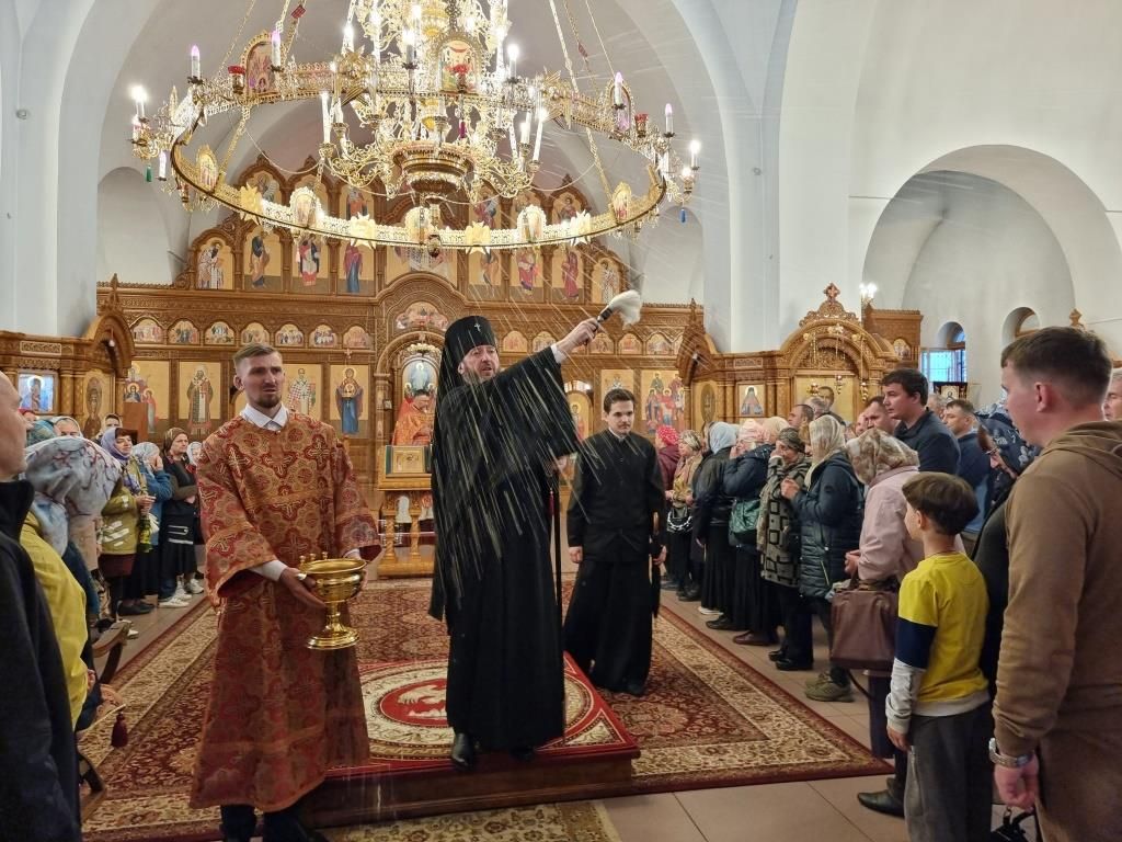 Затем Архипастырь благословил молящихся и окропил их святой водой, пожелав всем мира и спасения души.