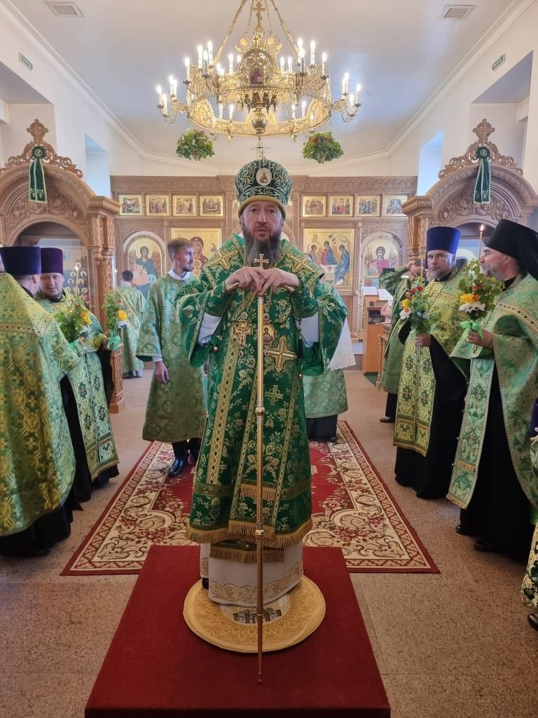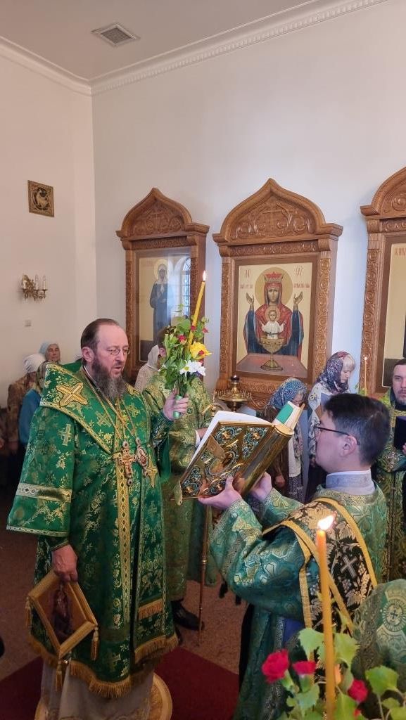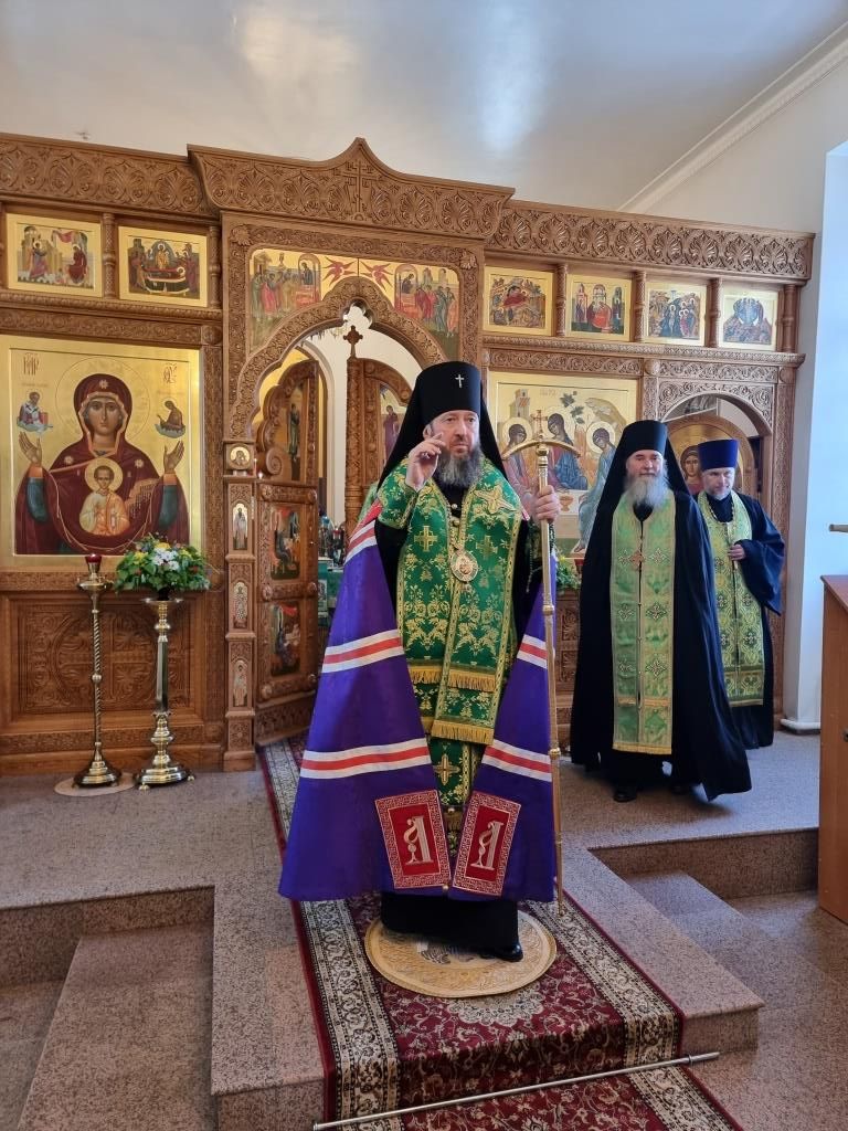 Накануне двунадесятого праздника Святой Пятидесятницы Управляющий Усть-Каменогорской и Семипалатинской епархией Высокопреосвященнейший архиепископ Амфилохий возглавил служение Всенощного бдения в старейшем храме Рудного Алтая – Свято-Троицком крепостном храме города Усть-Каменогорска.