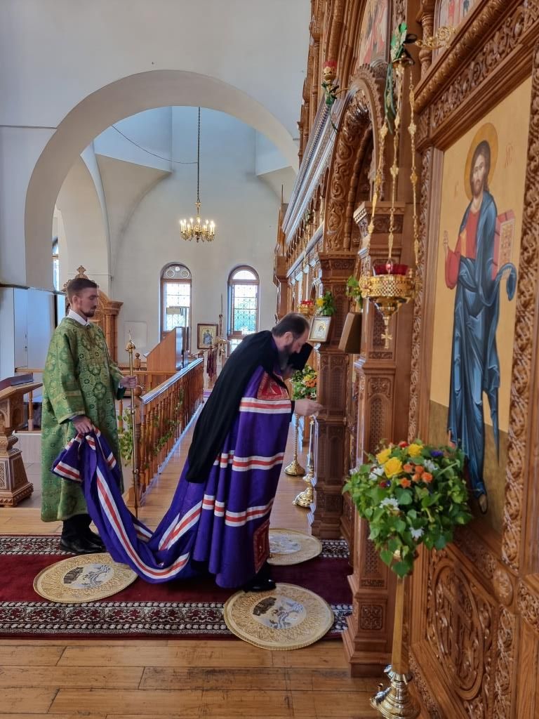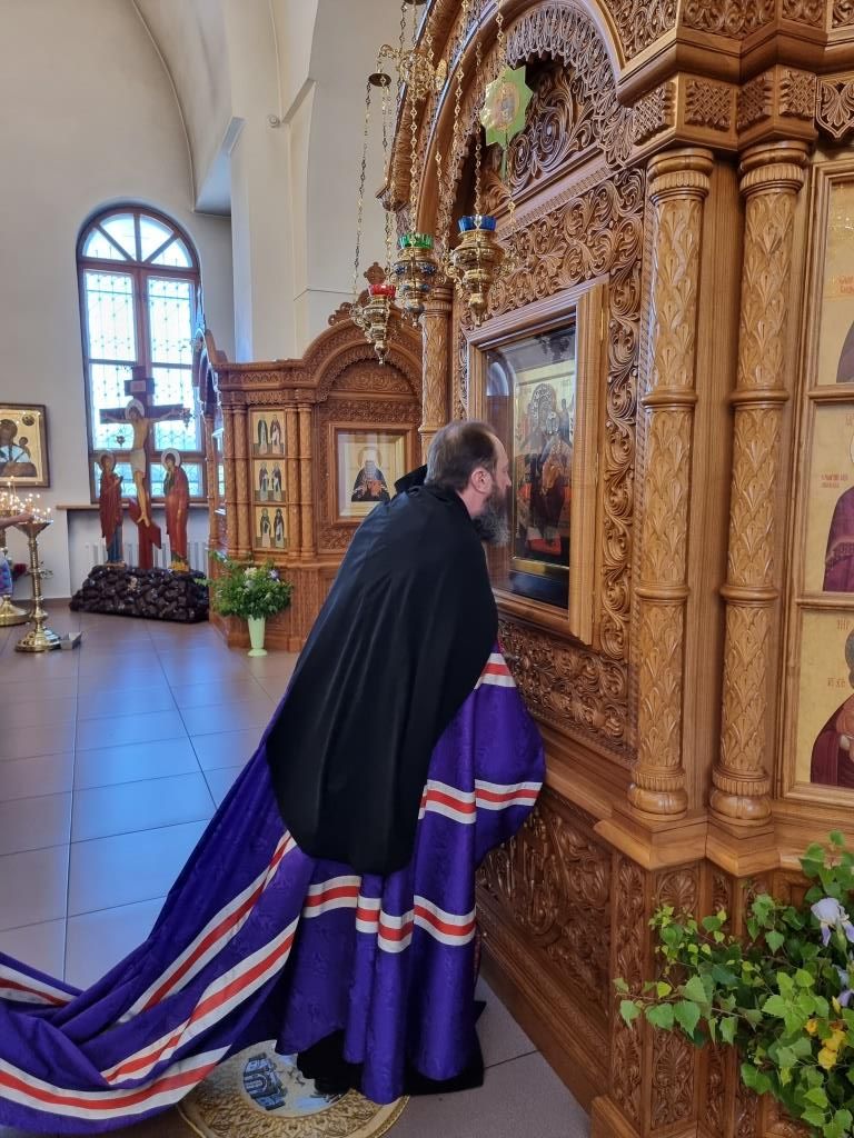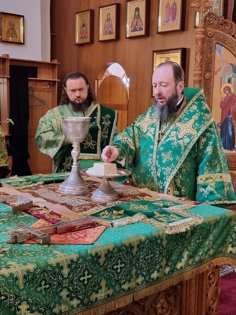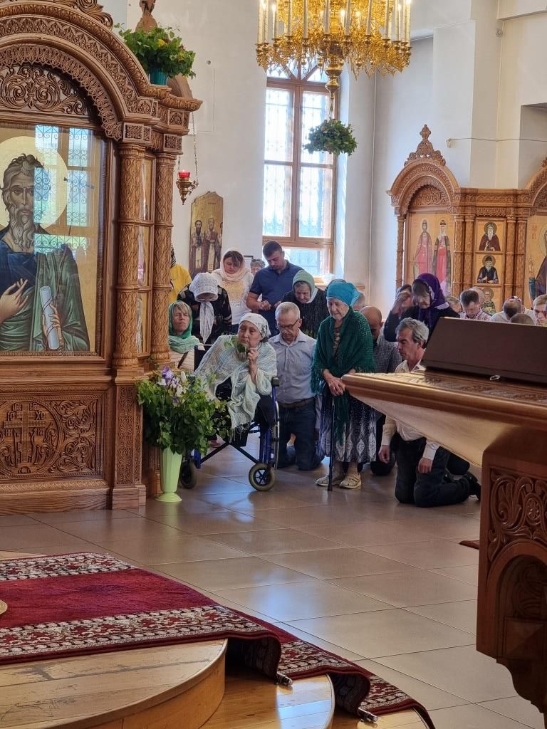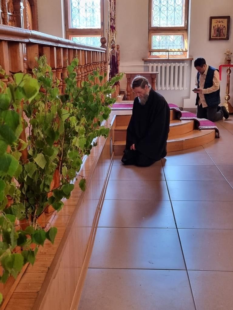 После окончания Литургии Высокопреосвященнейший Архипастырь совершил Великую вечерню праздника Пятидесятницы. Архиепископ Амфилохий и клирики от лица православных христиан Восточного Казахстана вознесли особые коленопреклонные молитвы.
