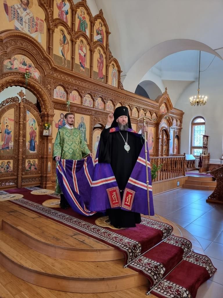 Высокопреосвященнейший архиепископ Усть-Каменогорский и Семипалатинский Амфилохий возглавил служение Божественной Литургии святителя Иоанна Златоуста в Андреевском кафедральном соборе – главном храме Рудного Алтая. Архипастырю сослужили: ключарь кафедрального собора иеромонах Никодим (Авдеев), клирики собора иерей Виталий Адаменков, иерей Роман Подрезов, иерей Константин Дьяков, секретарь епархии диакон Илия Кван, протодиакон Андрей Дудник.