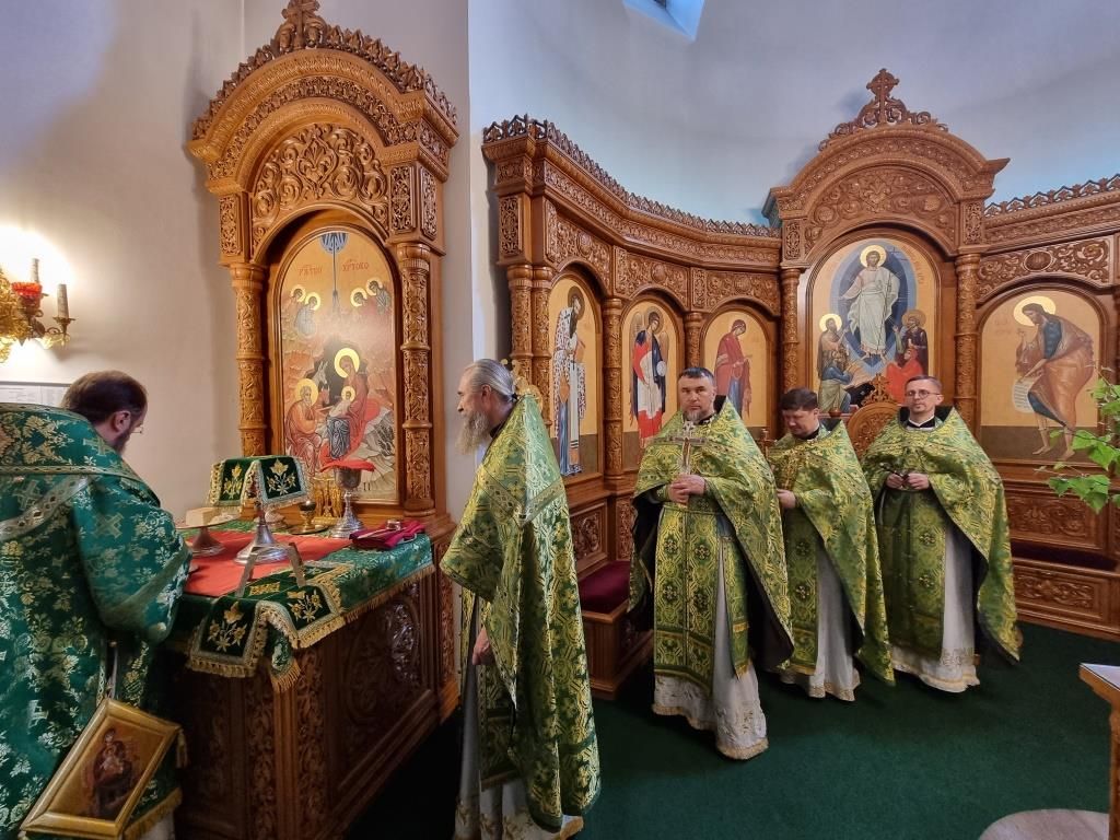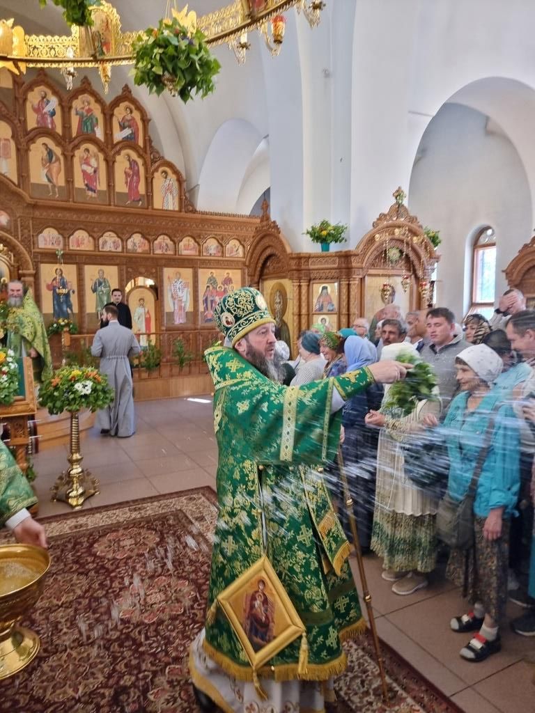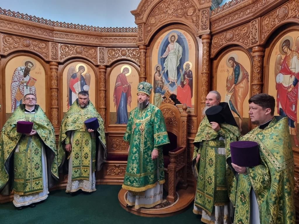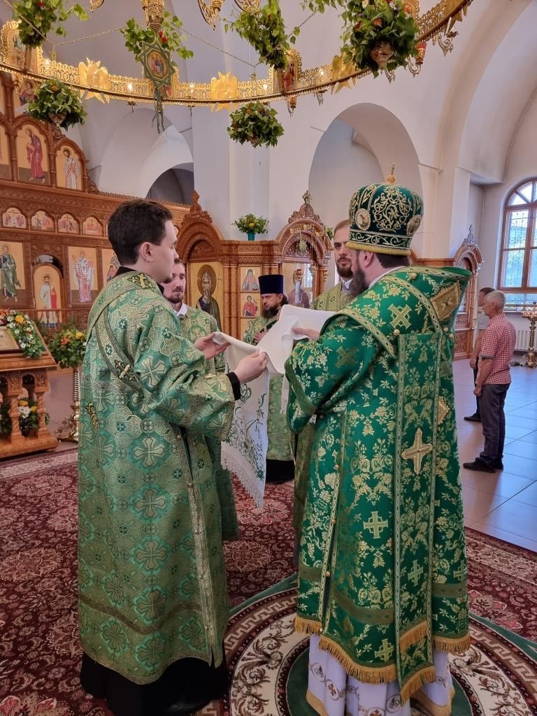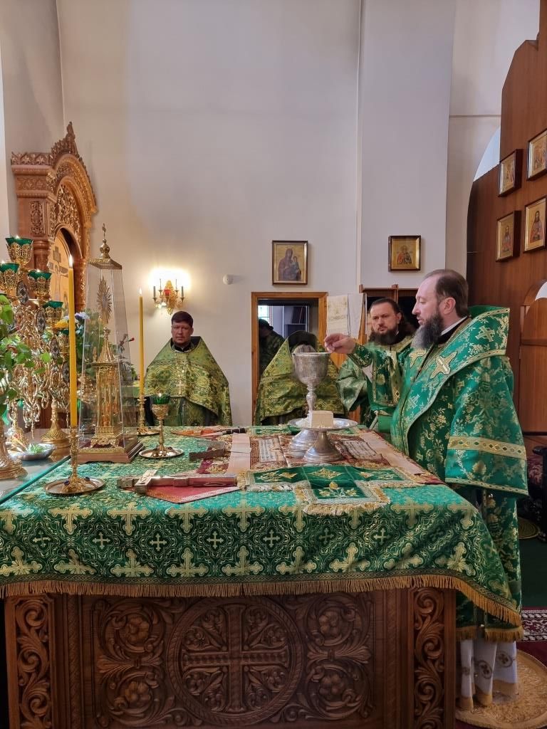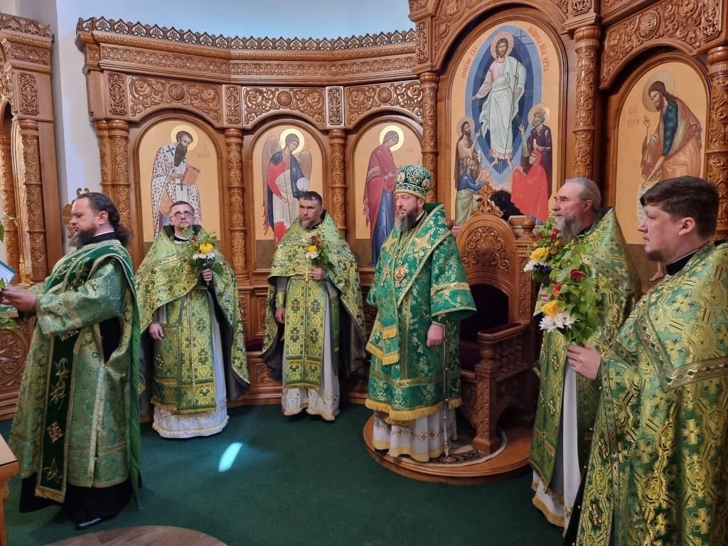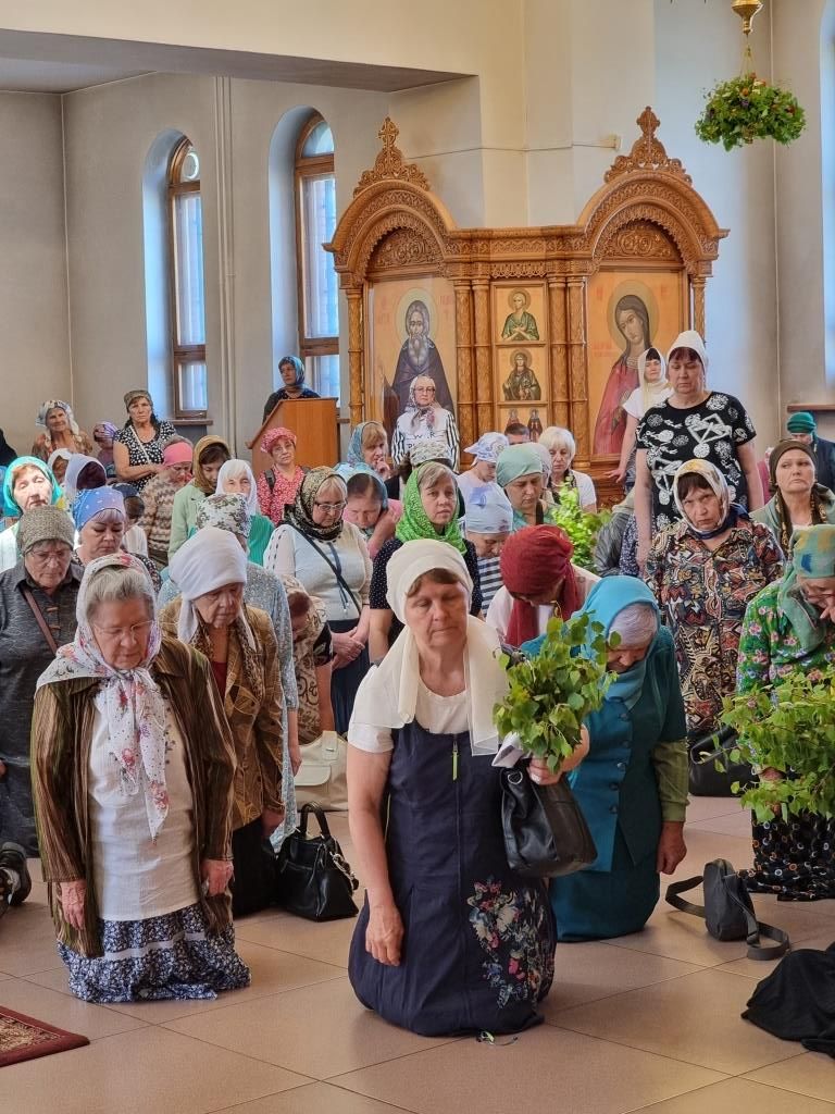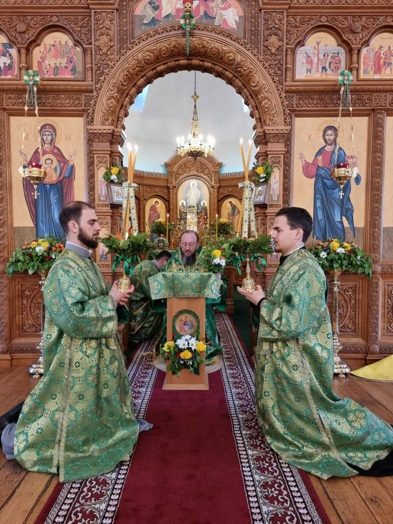 Песнопения праздника Пятидесятницы и Божественной Литургии исполнял хор кафедрального собора под управлением регента Н. Романцовой. За богослужением молились прихожане кафедрального собора и насельники Свято-Троицкого монастыря, сотрудники епархиального управления.