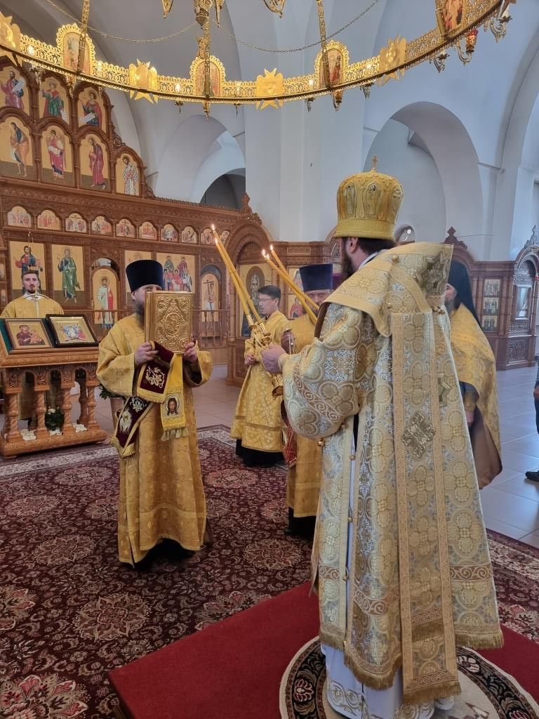 Высокопреосвященнейший архиепископ Усть-Каменогорский и Семипалатинский Амфилохий совершил Божественную Литургию святителя Иоанна Златоуста в Свято-Андреевском кафедральном соборе города Усть-Каменогорска.