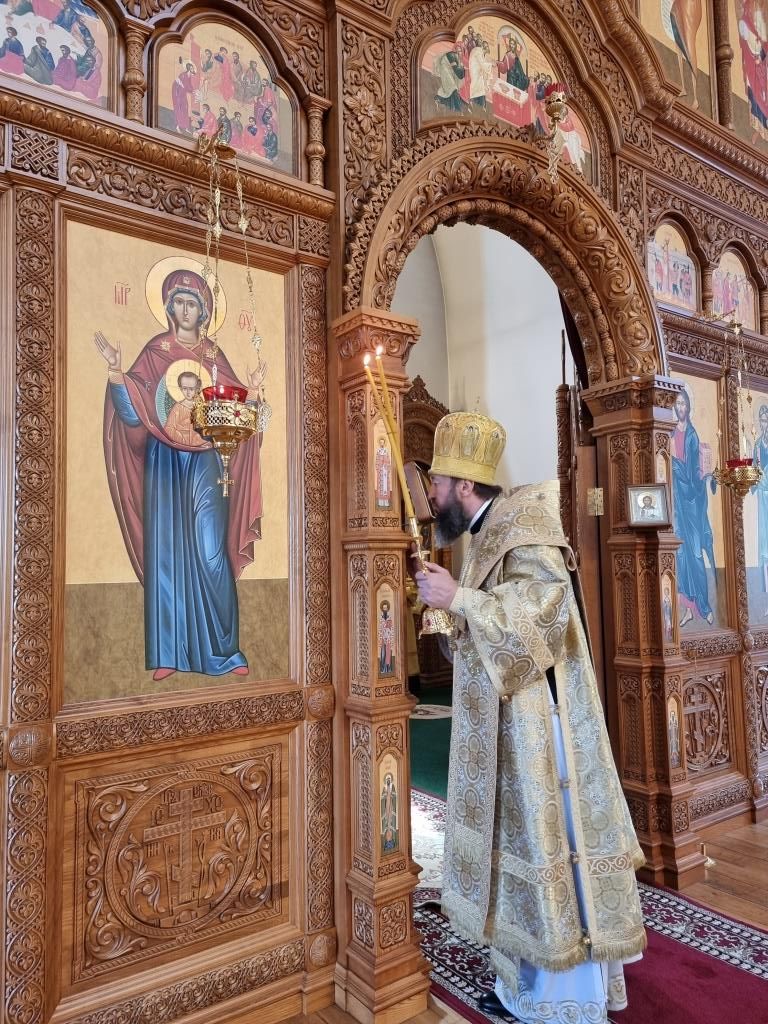 После окончания Божественной Литургии Владыка архиепископ поздравил молящихся с праздником и обратился к собравшимся со словами святительского поучения.