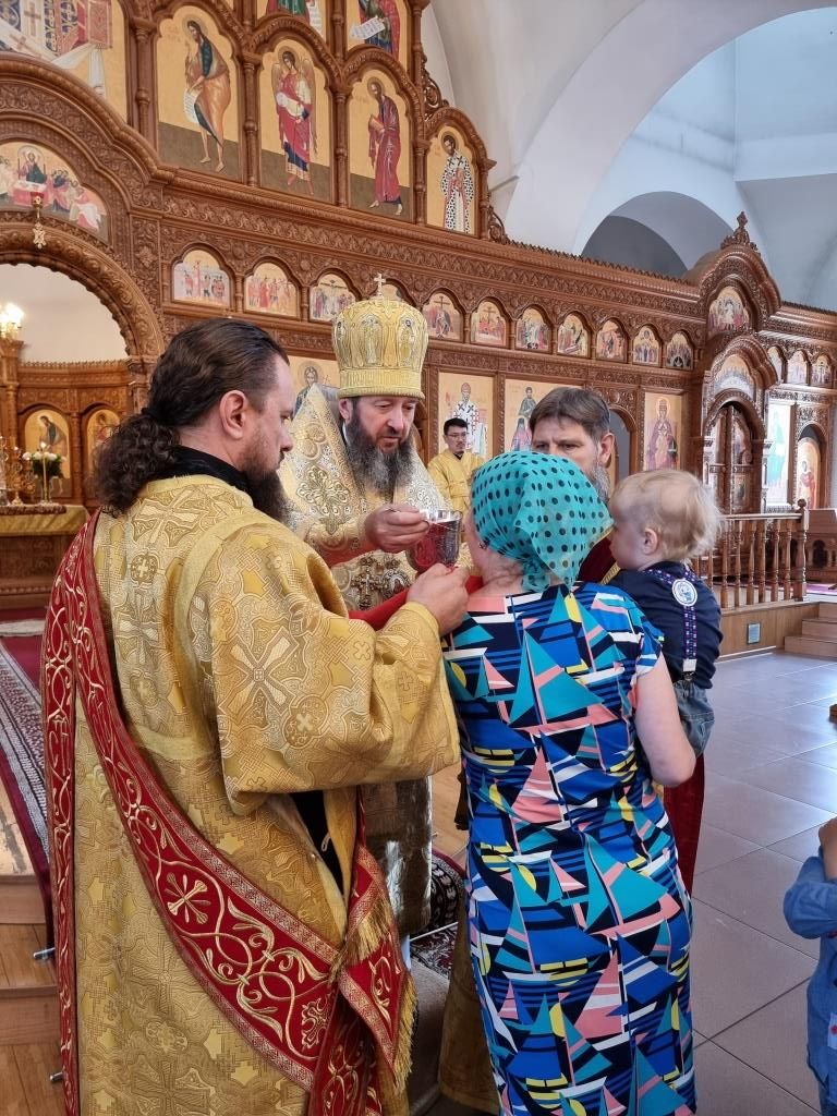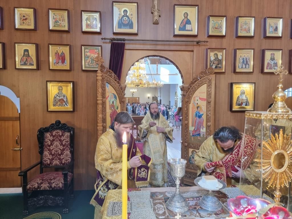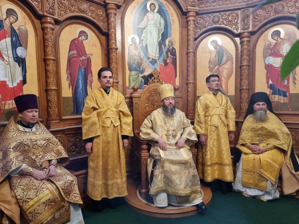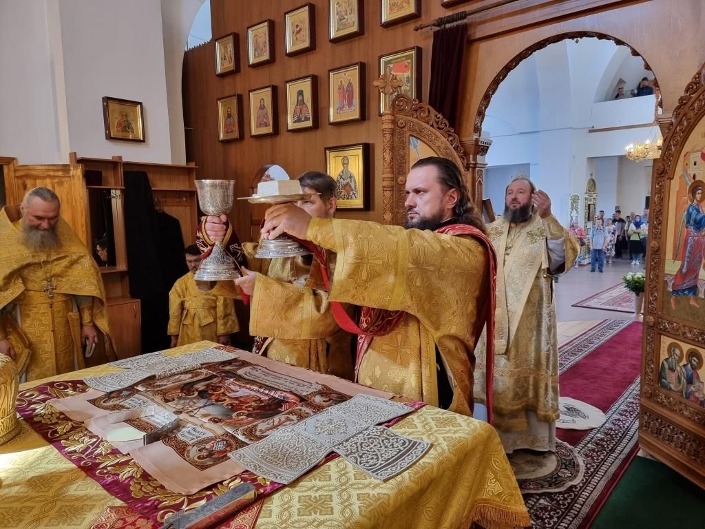За богослужением молились прихожане кафедрального собора, сотрудники епархиального управления и насельники Свято-Троицкого мужского монастыря города Усть-Каменогорска. Перед причастием мирян проповедь произнёс священник Константин Дьяков.
