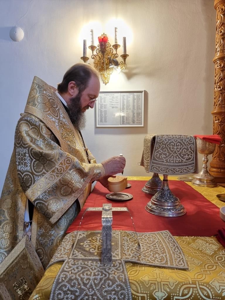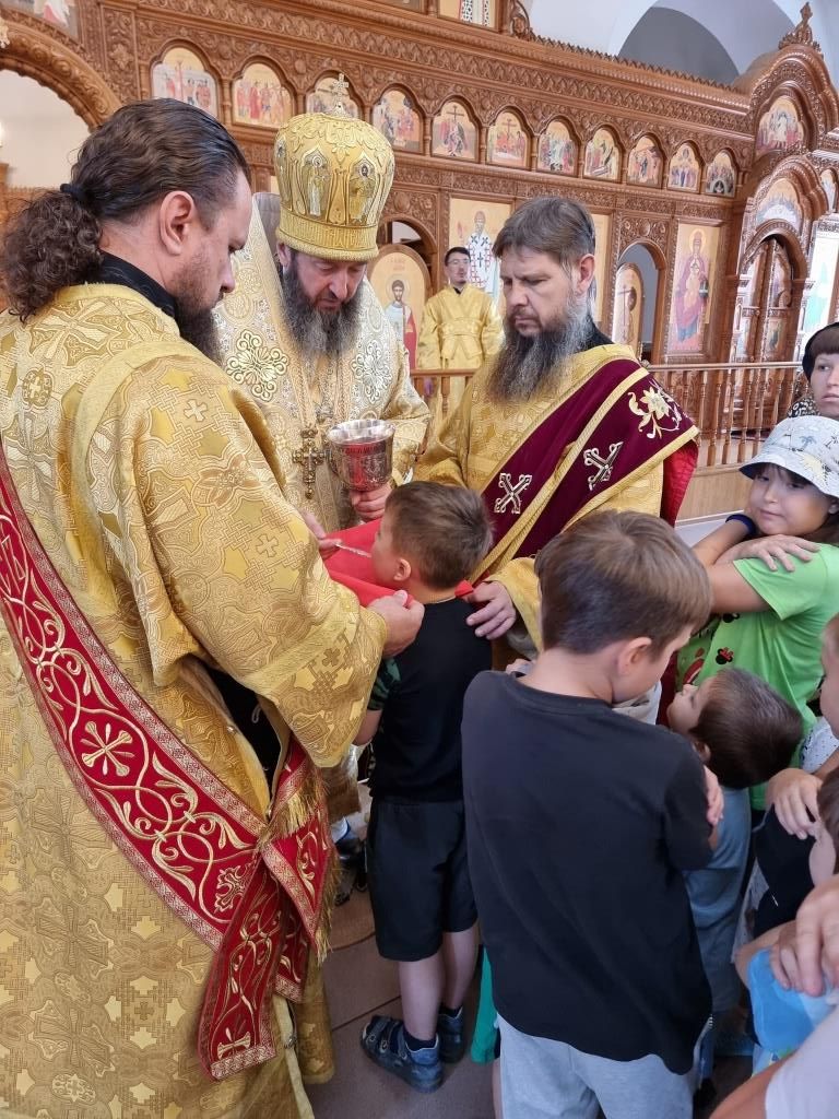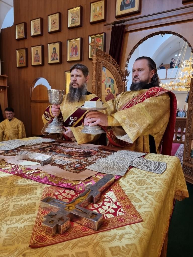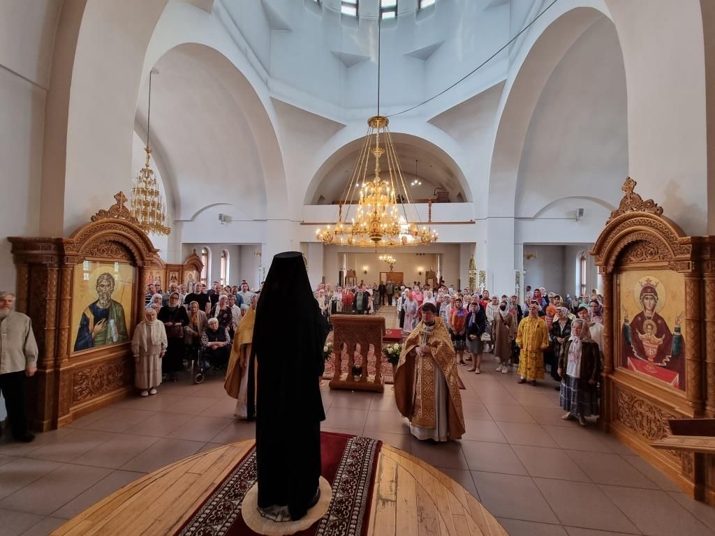 За богослужением молились прихожане кафедрального собора, сотрудники епархиального управления и насельники Свято-Троицкого мужского монастыря города Усть-Каменогорска. Перед причастием мирян проповедь произнёс священник Константин Дьяков.