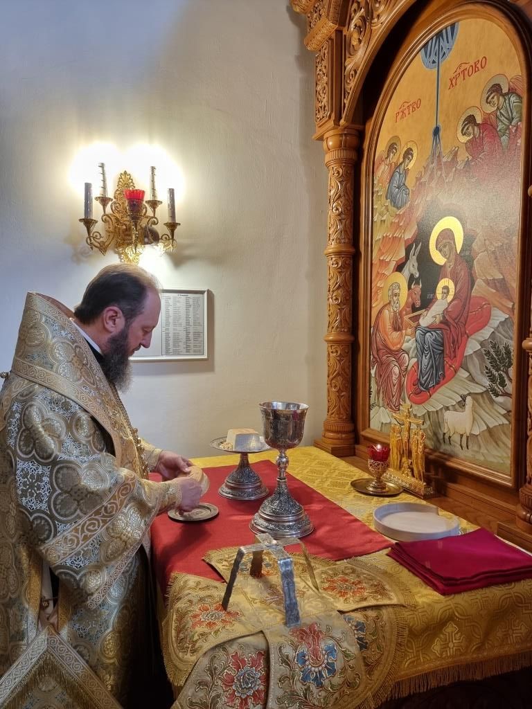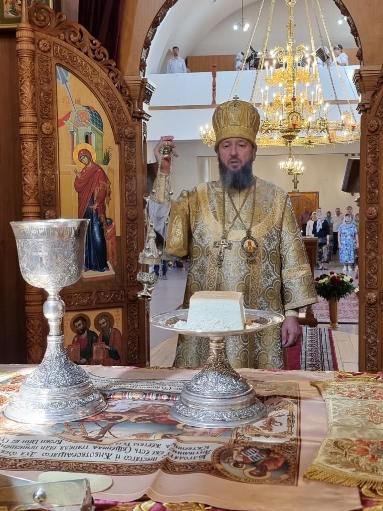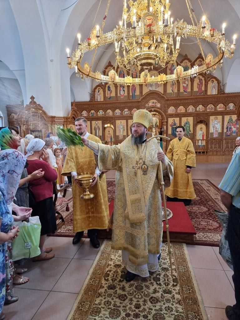 После завершения праздничного богослужения Владыка Амфилохий призвал на молящихся Божие благословение и окропил прихожан святой водой.