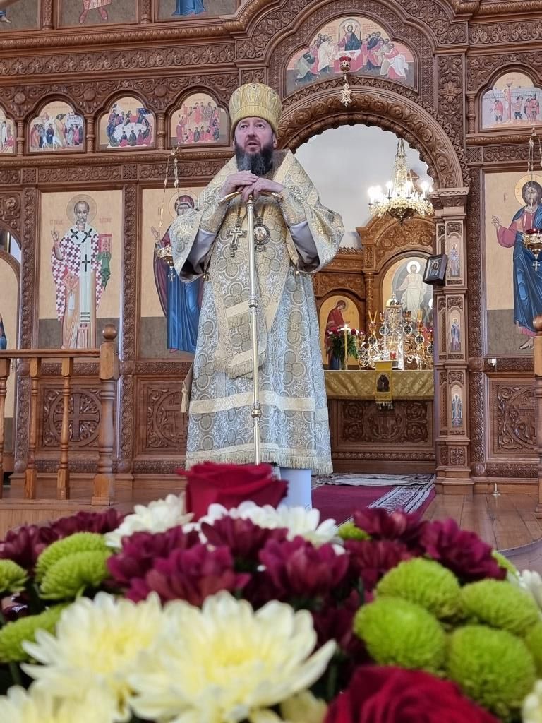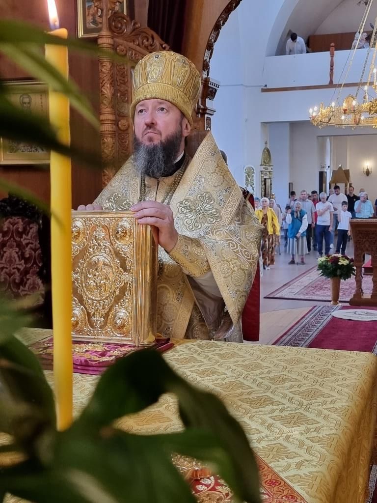 После окончания Божественной Литургии совершалось славление святым апостолам перед праздничной иконой, после чего Владыка архиепископ поздравил прихожан с праздником и обратился к ним со словами Архипастырского поучения.