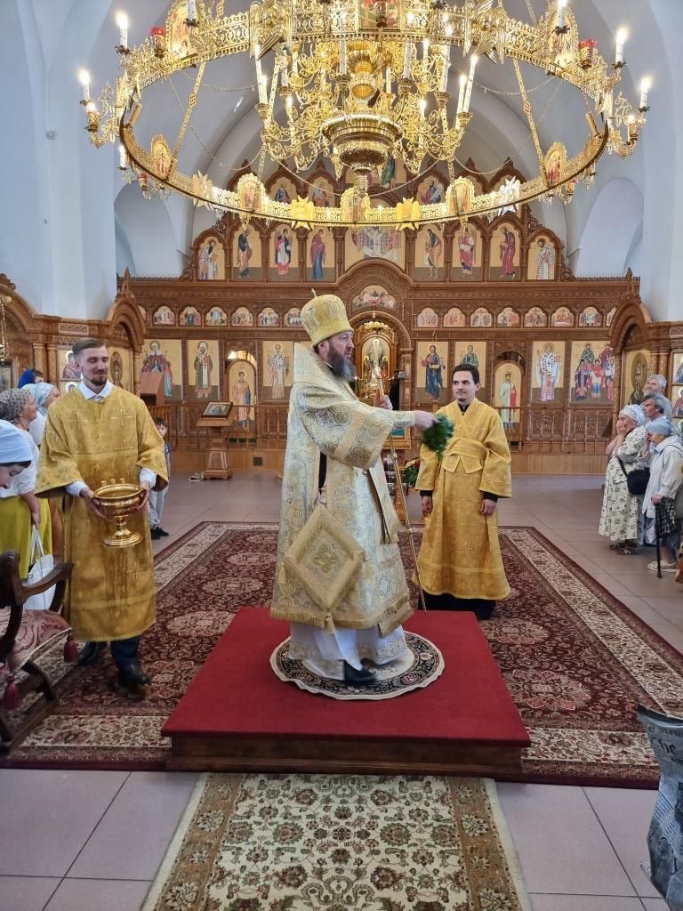 Его Высокопреосвященству сослужили: ключарь кафедрального собора иеромонах Никодим (Авдеев), клирики собора иерей Роман Подрезов и иерей Константин Дьяков, протодиакон Георгий Засыпкин. Песнопения праздника святых апостолов и Божественной Литургии исполнял хор кафедрального собора, регент Н. Романцова.