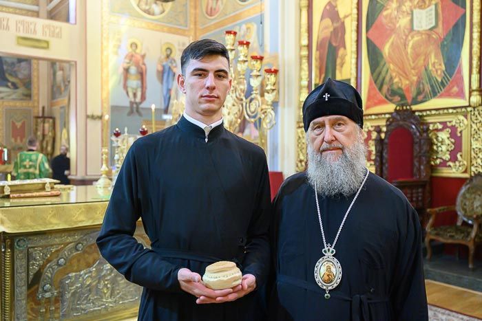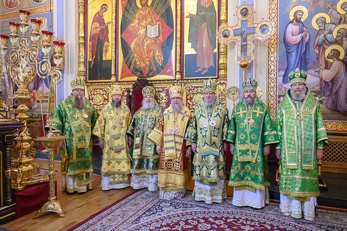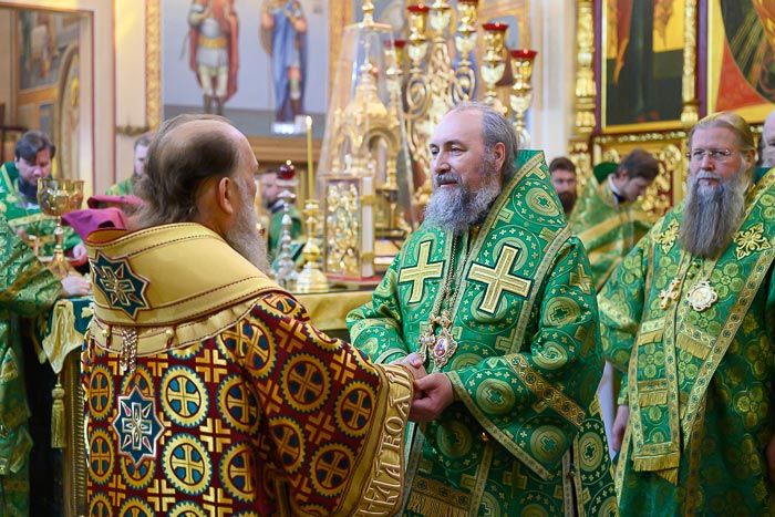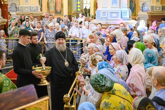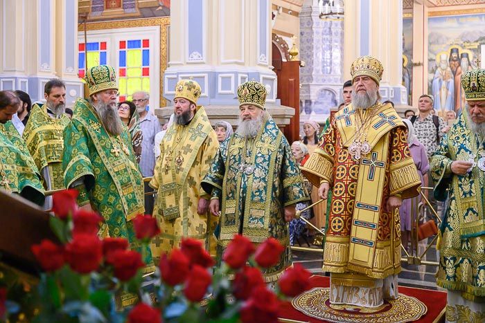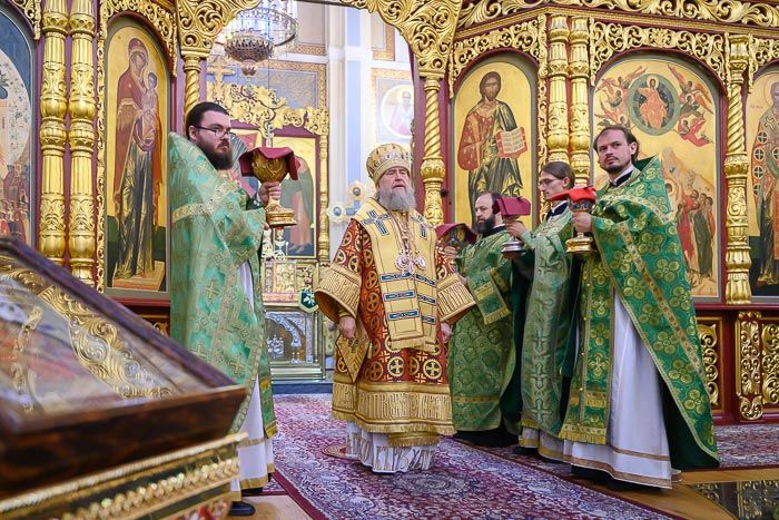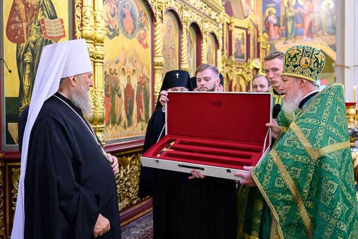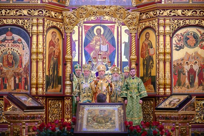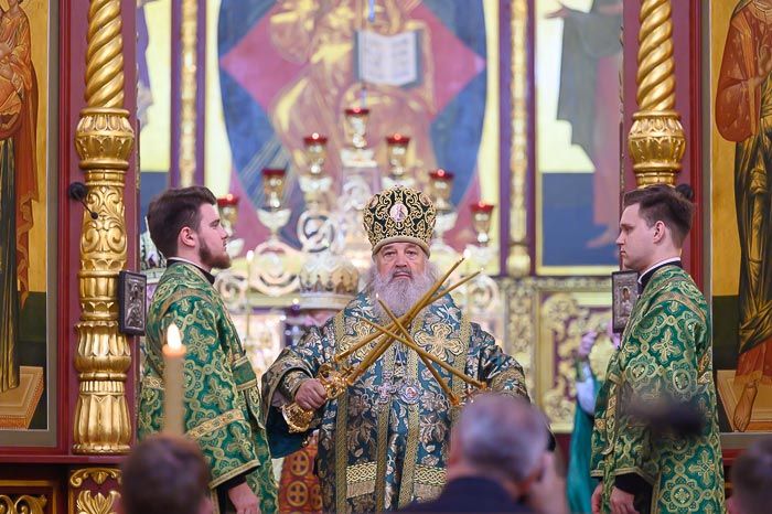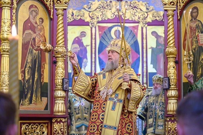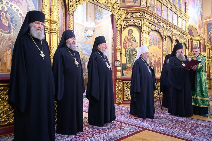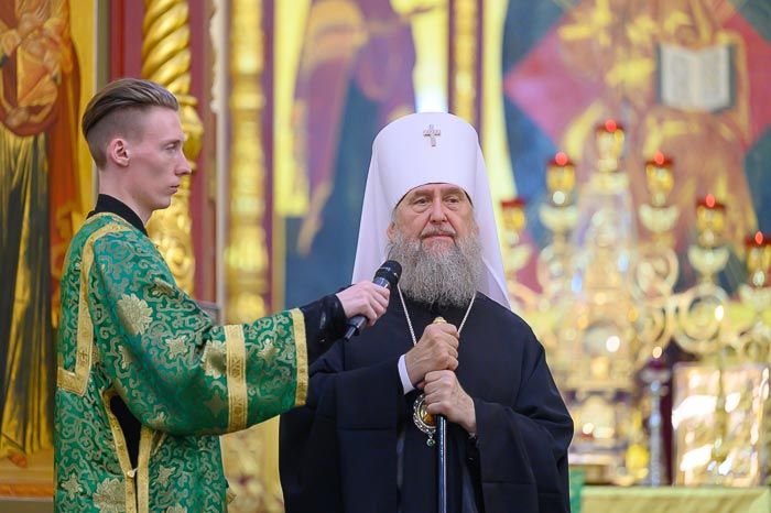 Его Высокопреосвященство сердечно поблагодарил епископат, духовенство и всех участников Литургии за поздравления и испросил у присутствующих в храме сугубых молитв о ниспослании укрепляющей благодатной помощи Божией в архипастырском служении.