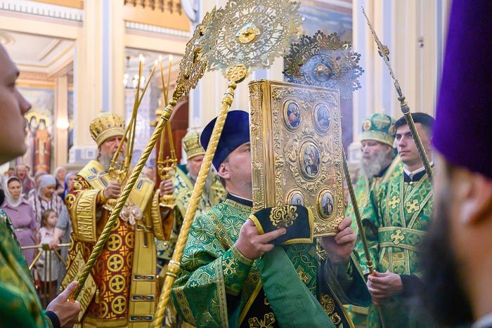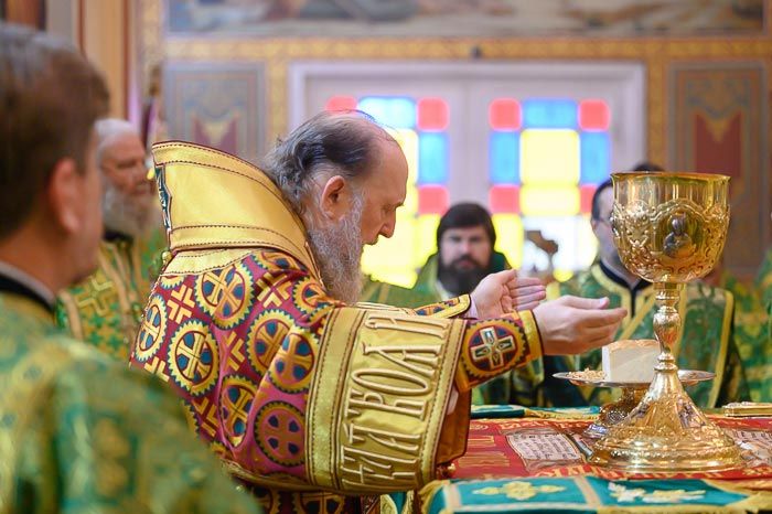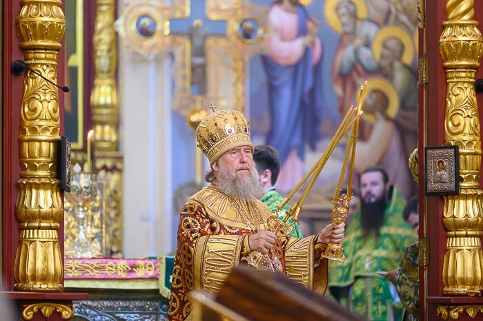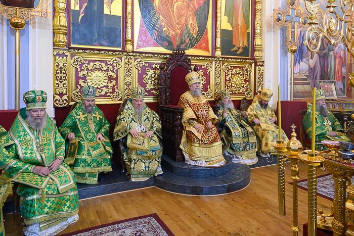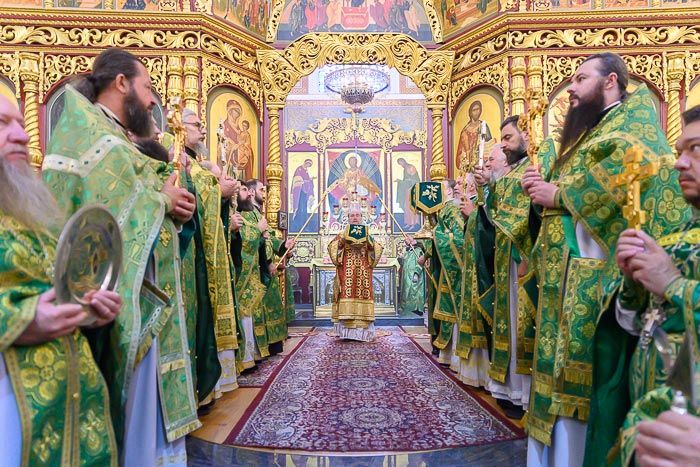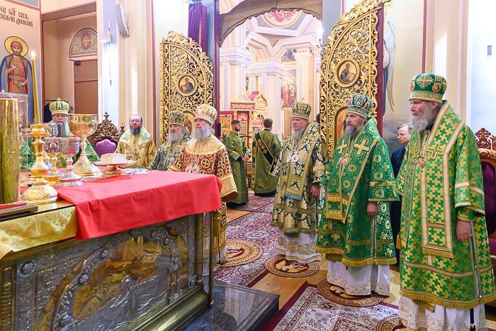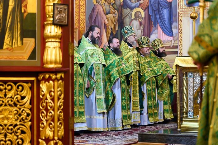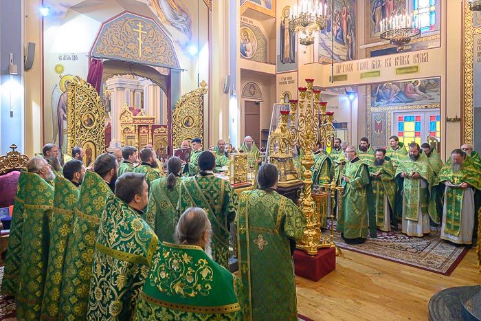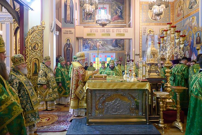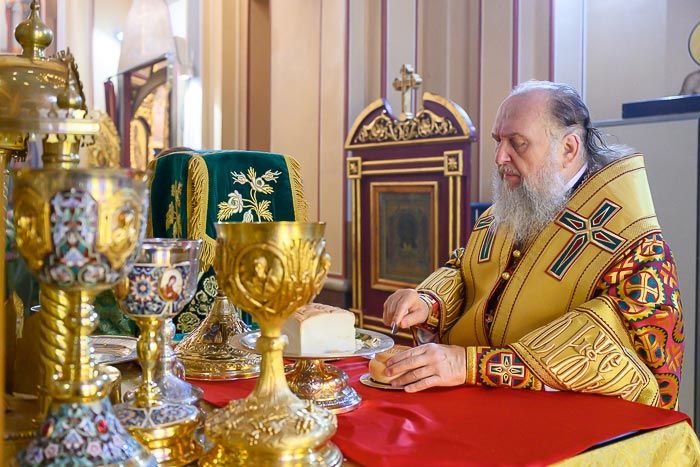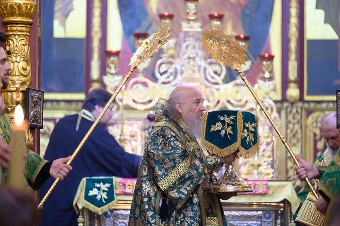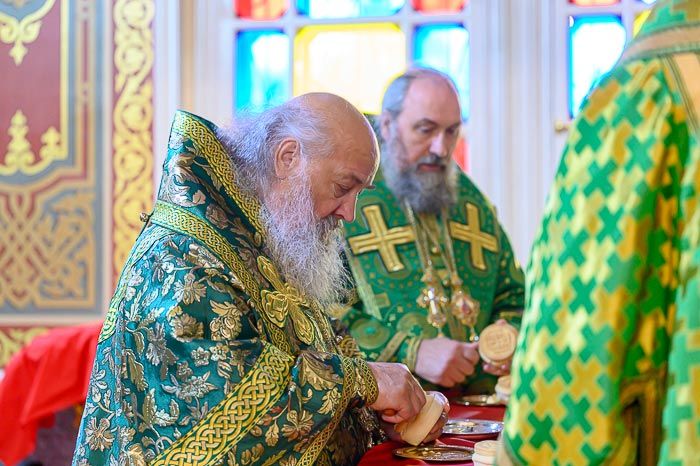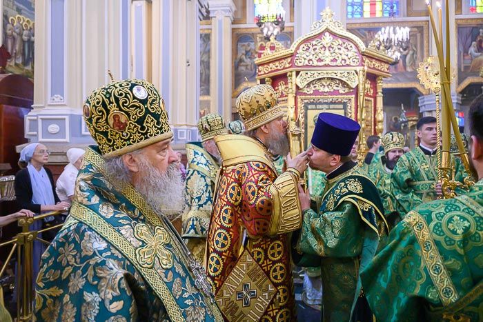 Его Высокопреосвященство сердечно поблагодарил епископат, духовенство и всех участников Литургии за поздравления и испросил у присутствующих в храме сугубых молитв о ниспослании укрепляющей благодатной помощи Божией в архипастырском служении.