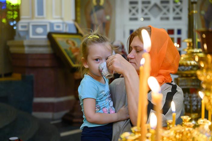При пении тропаря и величания пророку Илии владыка митрополит окропил святой водой собравшихся.