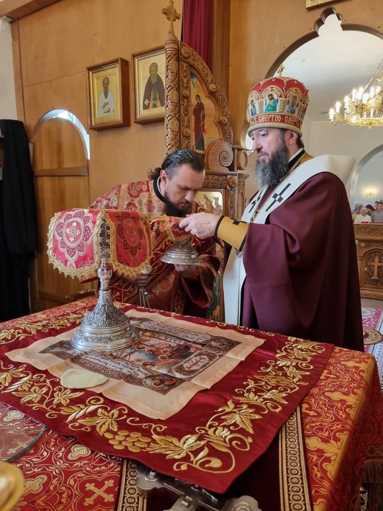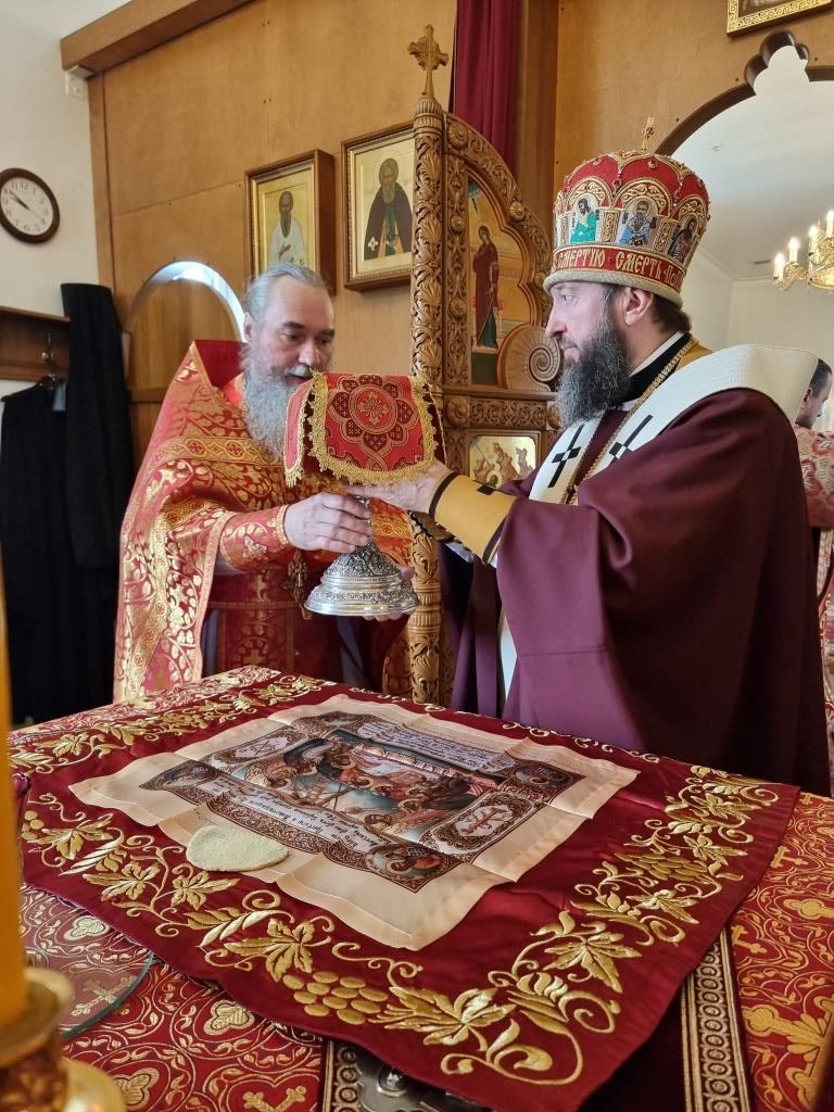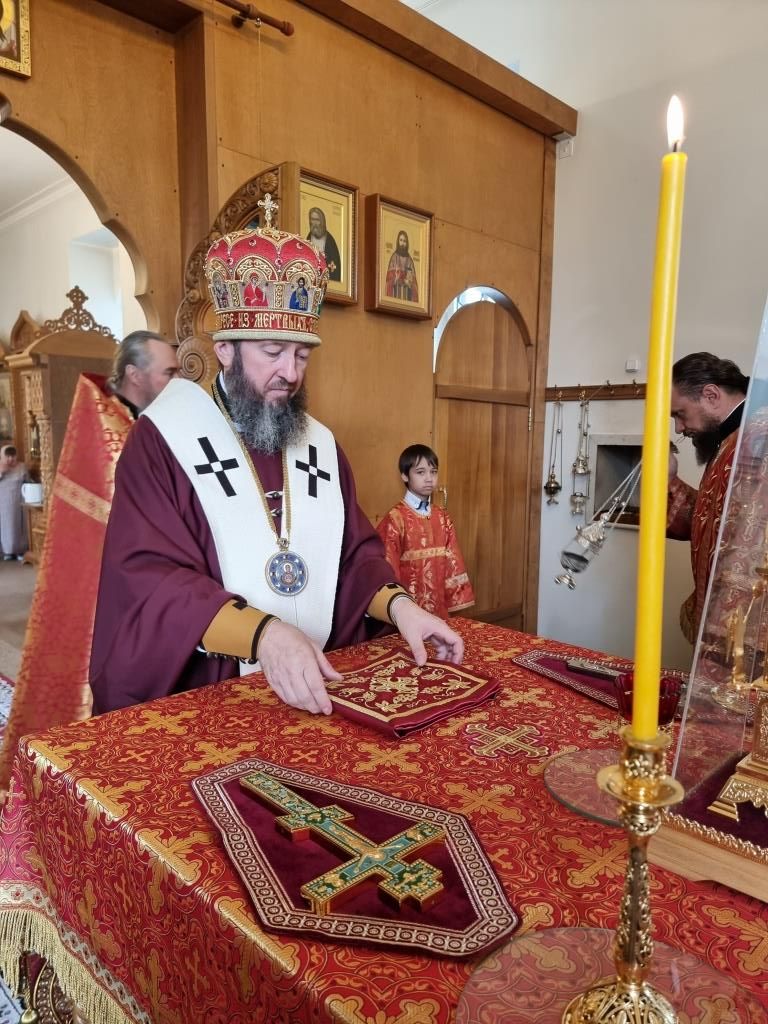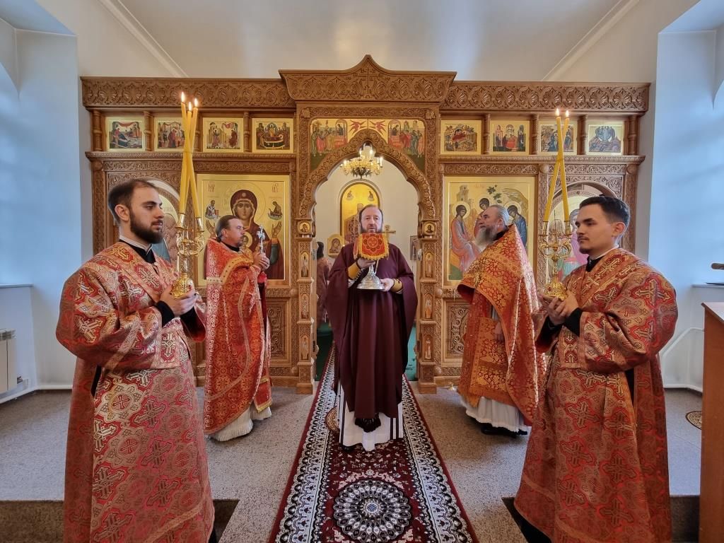 В праздничный день Управляющий Усть-Каменогорской и Семипалатинской епархией Высокопреосвященнейший архиепископ Амфилохий возглавил служение Божественной Литургии святителя Иоанна Златоуста в храме в честь Святой Троицы города Усть-Каменогорска.