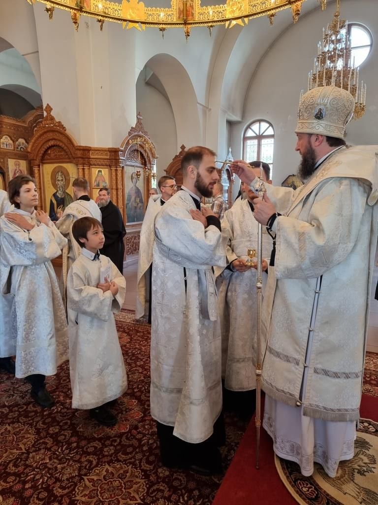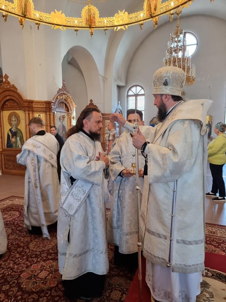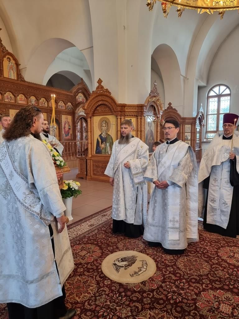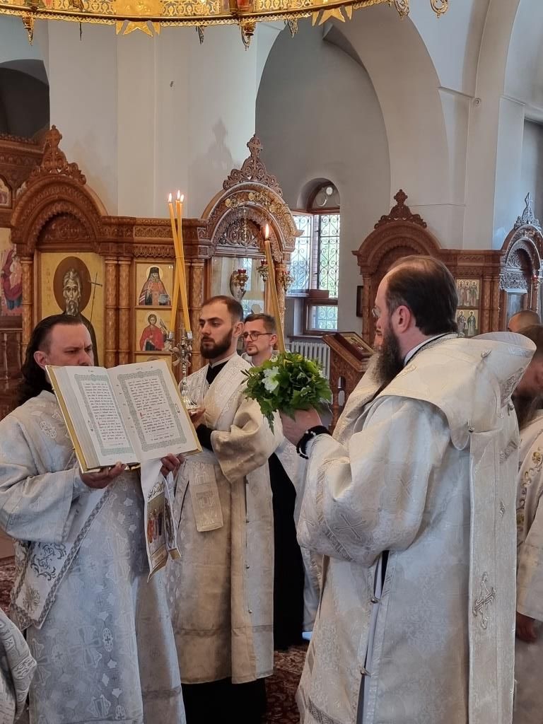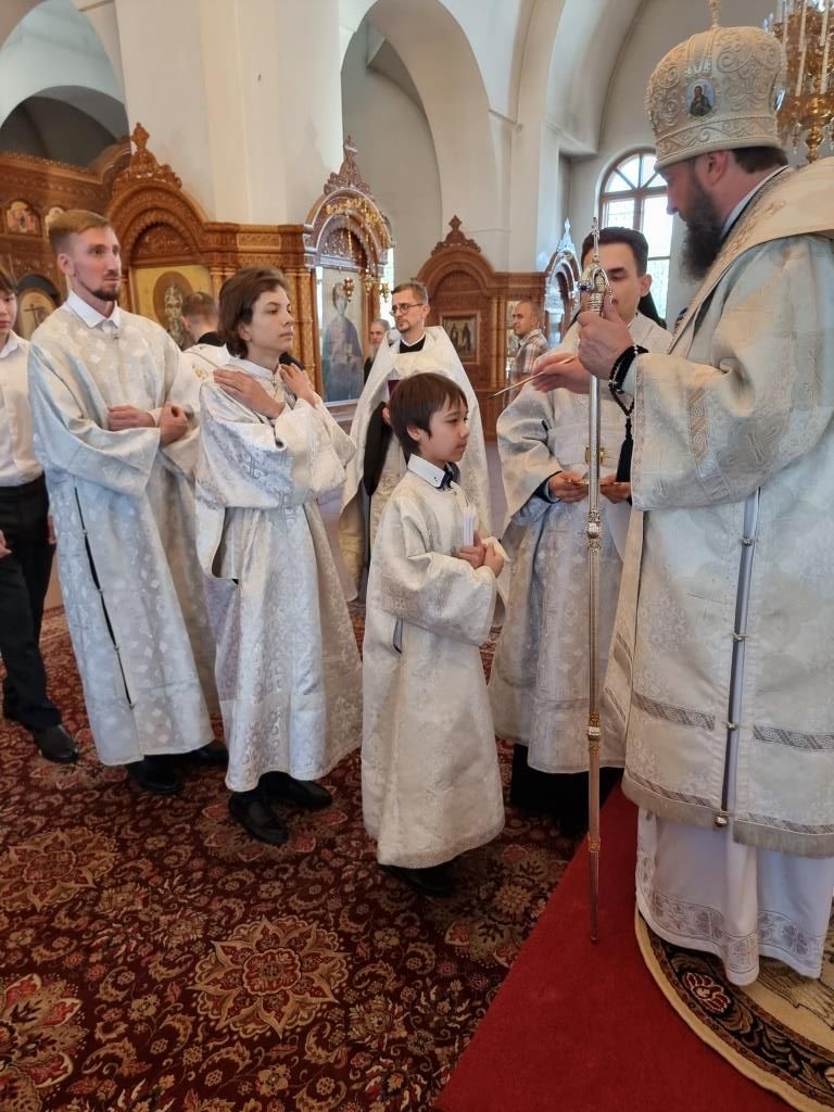 Высокопреосвященнейшему Архипастырю сослужили: ключарь Андреевского кафедрального собора иеромонах Никодим (Авдеев), клирики собора иерей Алексий Клепиков и иерей Константин Дьяков, секретарь епархии диакон Илия Кван, протодиакон Георгий Засыпкин и протодиакон Андрей Дудник. Богослужебные песнопения исполнял хор под управлением Н. Романцовой.