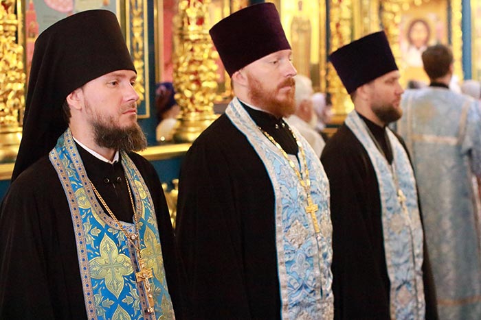 За всенощным бдением Главе Казахстанского Митрополичьего округа сослужили: архиепископ Усть-Каменогорский и Семипалатинский Амфилохий, викарий Астанайской епархии епископ Талгарский Вениамин; благочинный приходов казахстанской столицы архимандрит Сергий (Карамышев), соборное духовенство и клирики Астанайского благочиния.