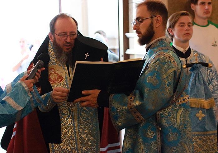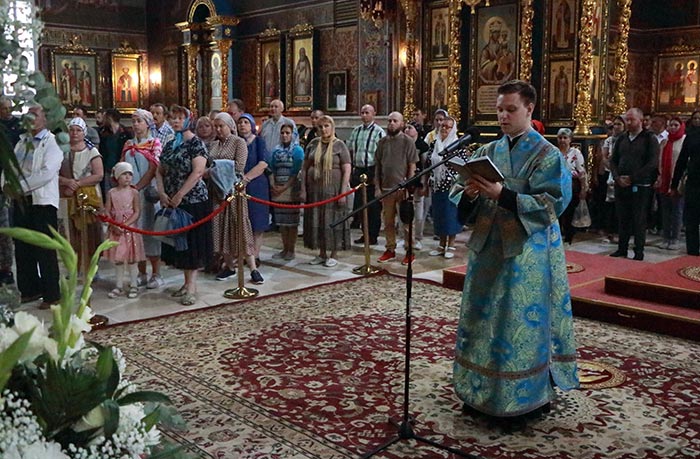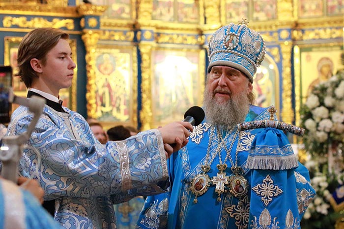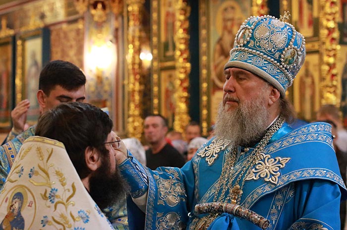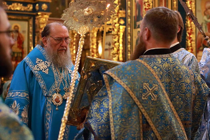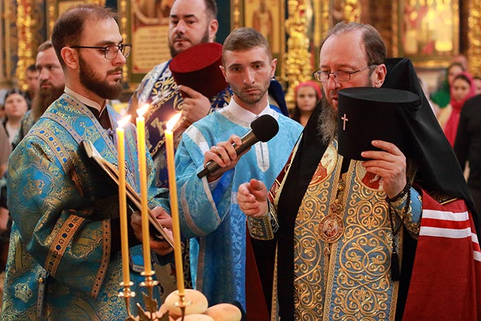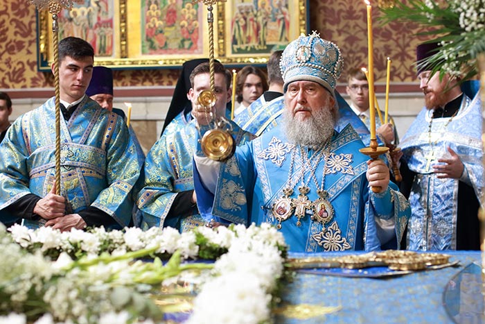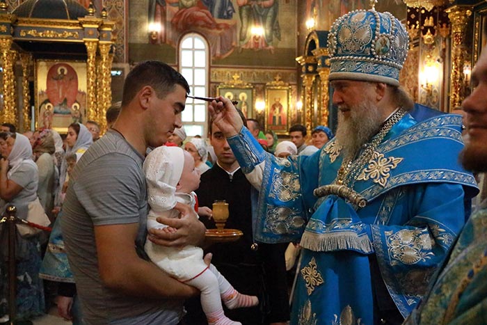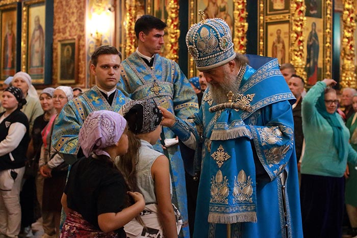 По прочтении евангельского зачала митрополит Александр поздравил собравшихся с наступающим праздником и помазал духовенство и верующих освященным елеем.