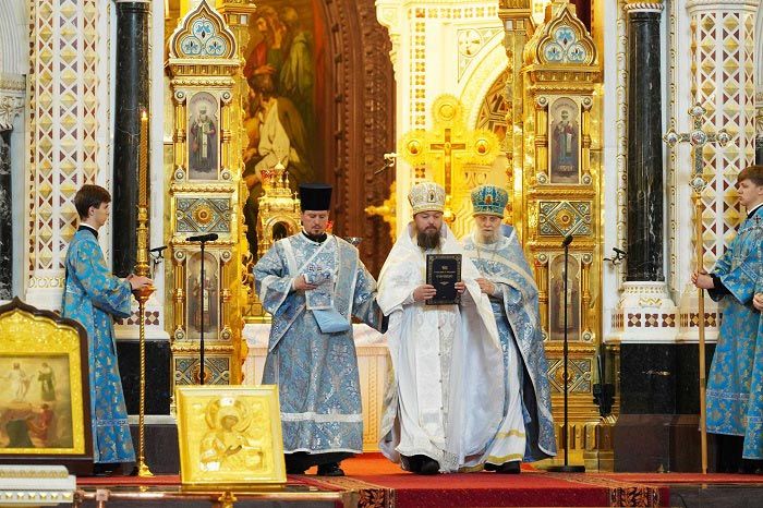 Богослужебные песнопения исполнил Патриарший хор Храма Христа Спасителя (регент — И.Б. Толкачев).