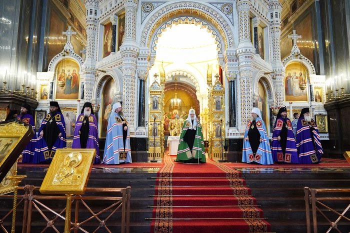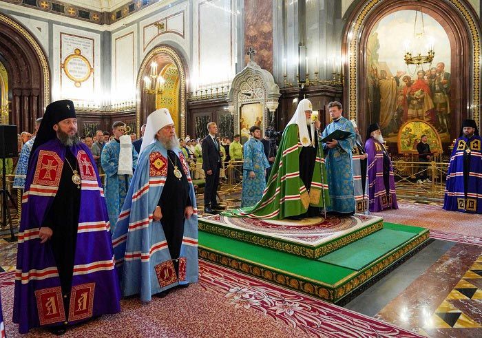 На сугубой ектении были вознесены особые прошения, Предстоятель Русской Православной Церкви прочитал молитву о Святой Руси.