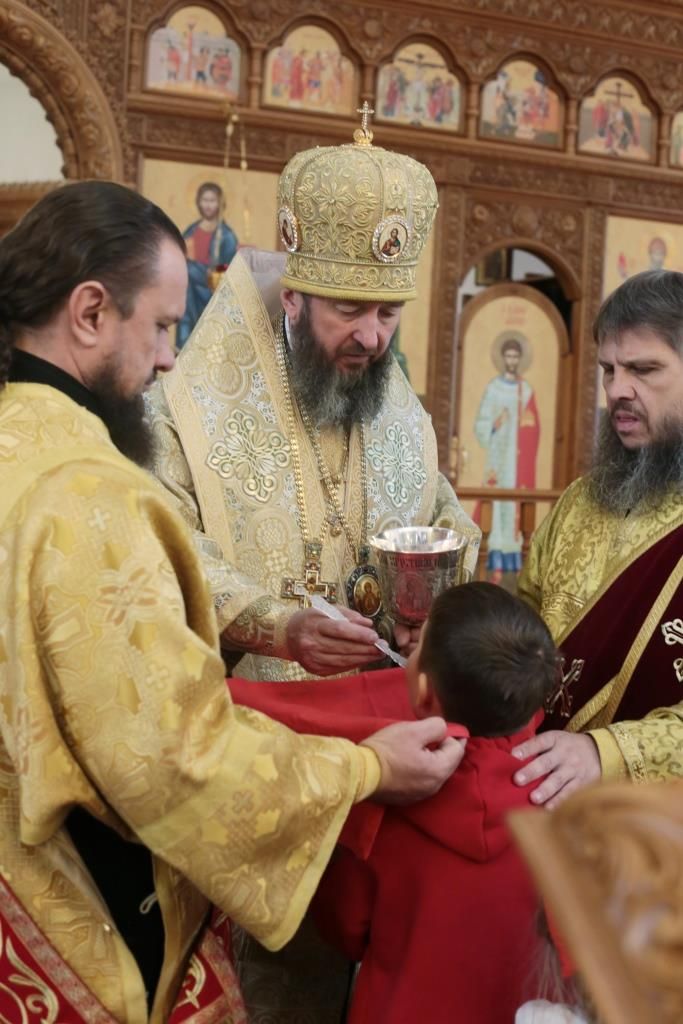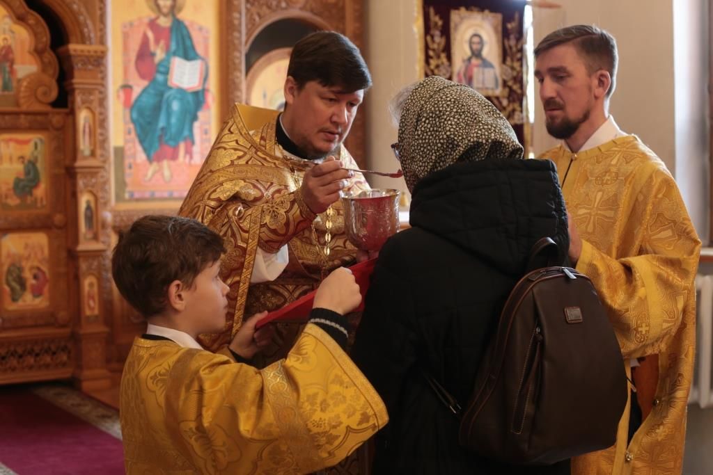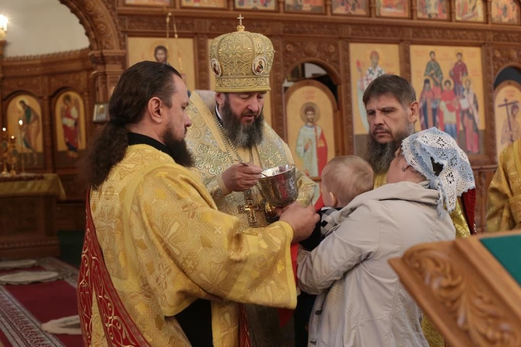 Перед причастием мирян проповедовал священник Виталий Адаменков. После завершения богослужения Владыка Амфилохий обратился к прихожанам со словами святительского поучения.